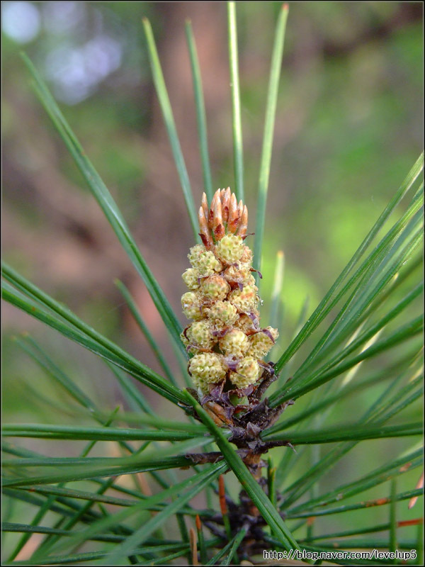 설명 : 수꽃은 타원형, 잎은 2가닥