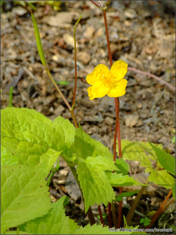 설명 : 피나물과 비슷하지만 매미꽃은 꽃봉오리에 털이 없고, 피나물은 꽃봉오리에 털이 있다
