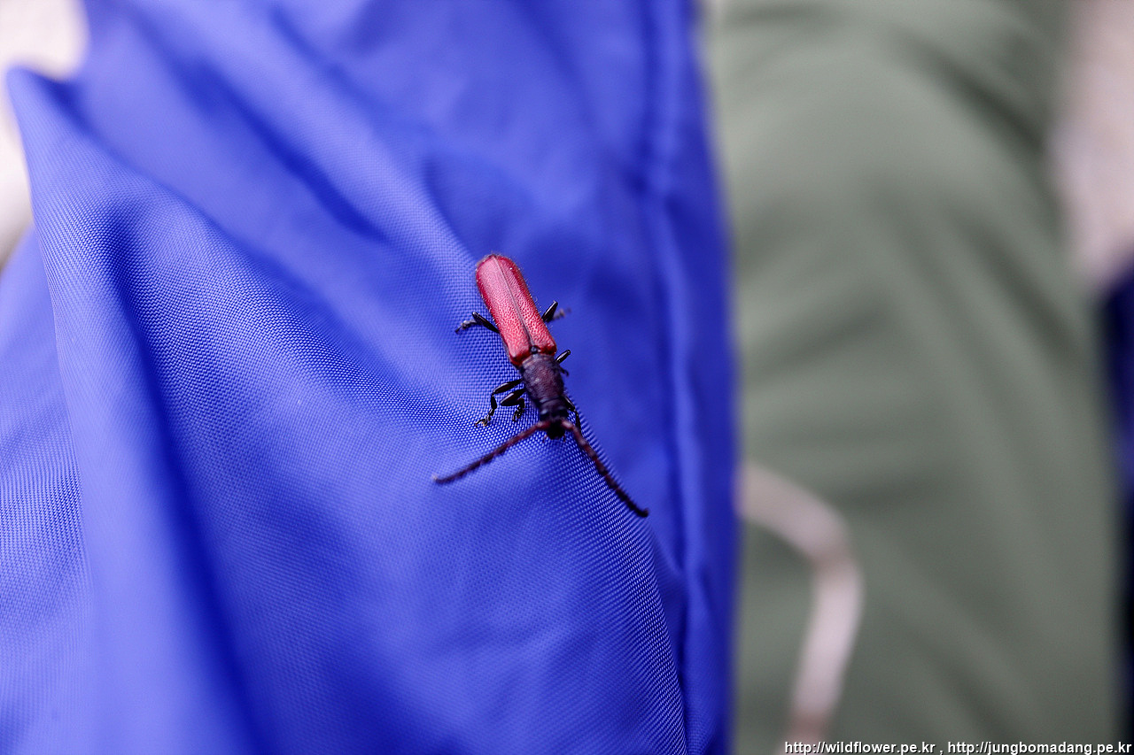 꽃하늘소 한마리가 적극적으로 들이 대기 시작하는 데...