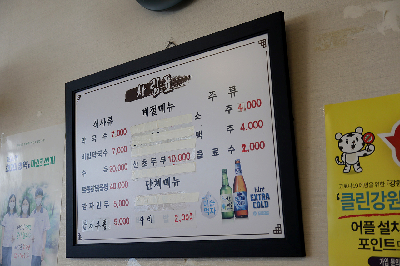 물막국수(곱배기) 8000원, 감자만두 5000원, 막걸리 900ml 4000원. 막걸리 값이 올랐네요. 괜찮습니다 ^^