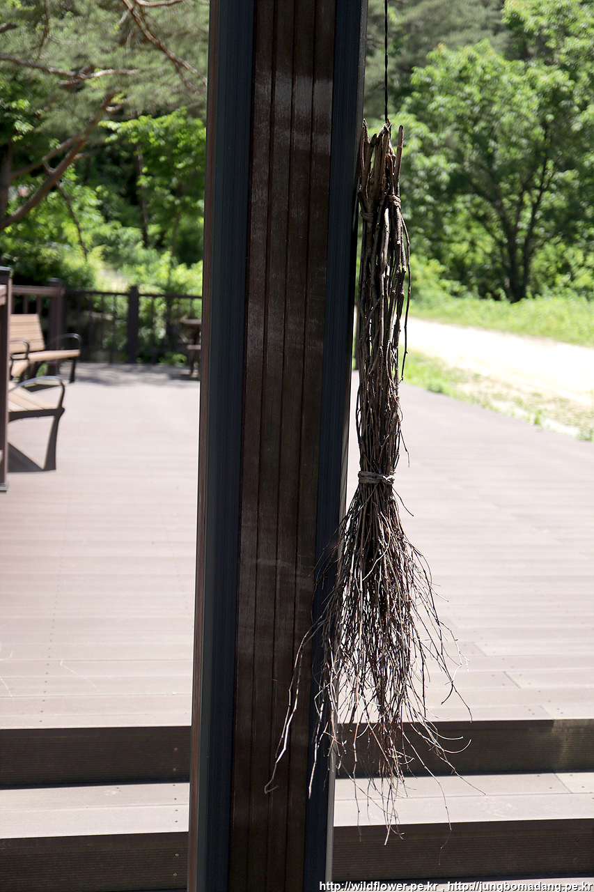 싸리나무가 많아서 싸리재, 그래서 그런 듯 싸리비도 쉼터에 걸어 두었네요.