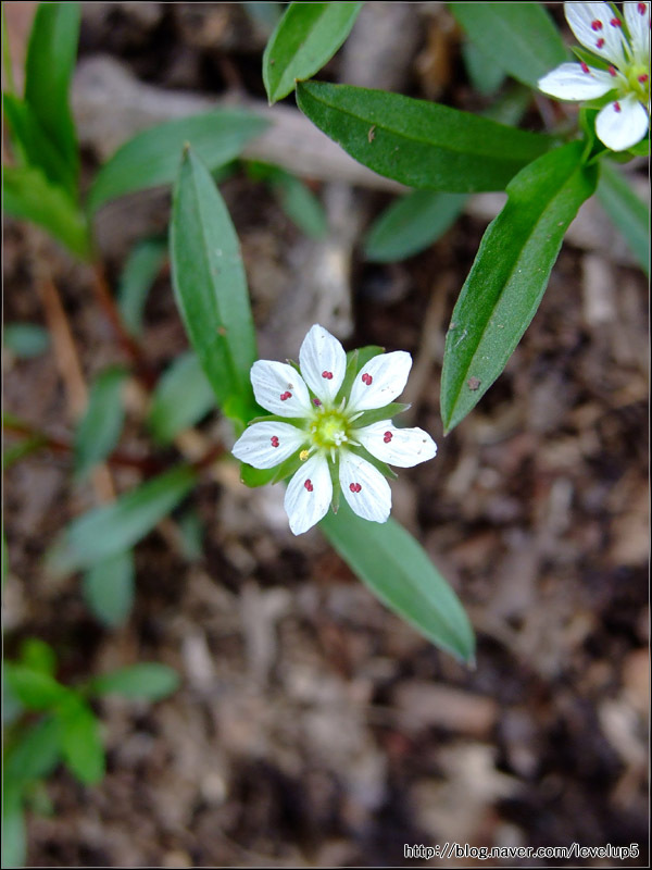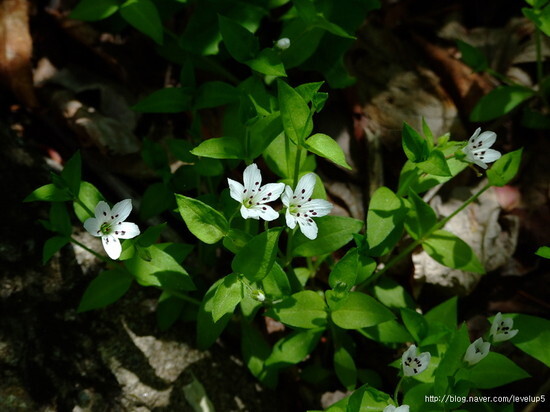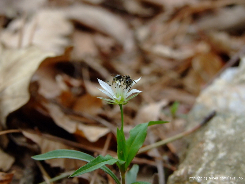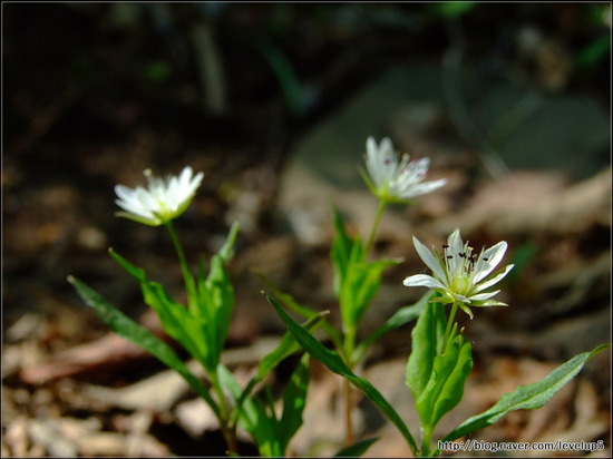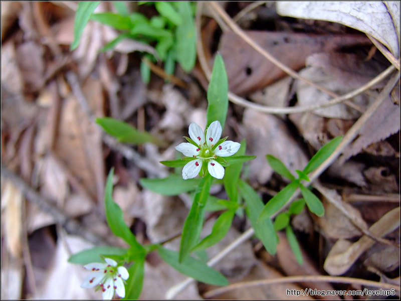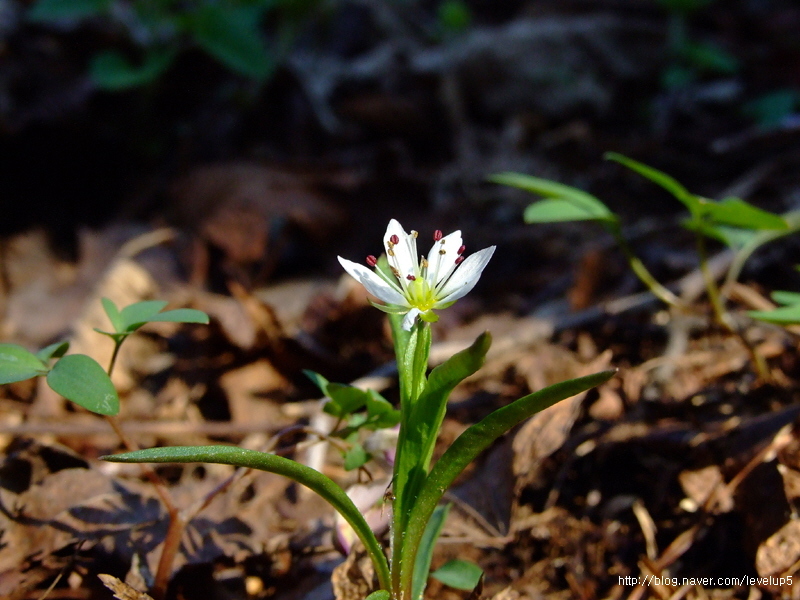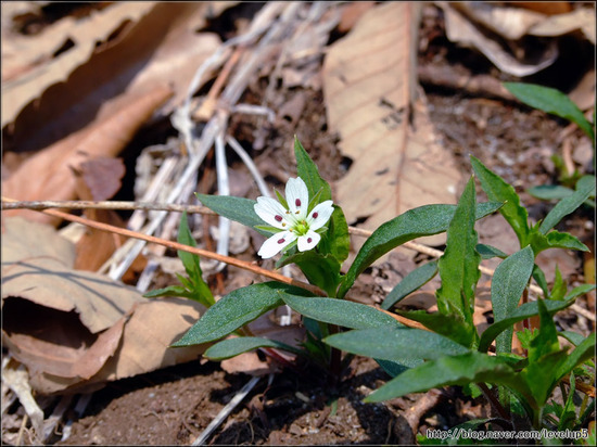 설명 : 큰개별꽃은 잎 끝이 V로 파였고, 잎자루 털없으며, 개별꽃은 잎 끝이 안파였고, 잎자루와 줄기에 털이 있다.