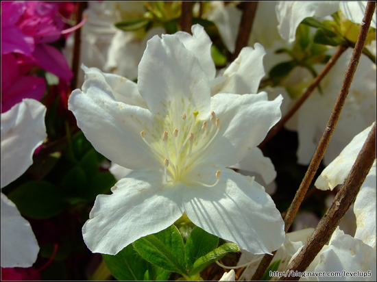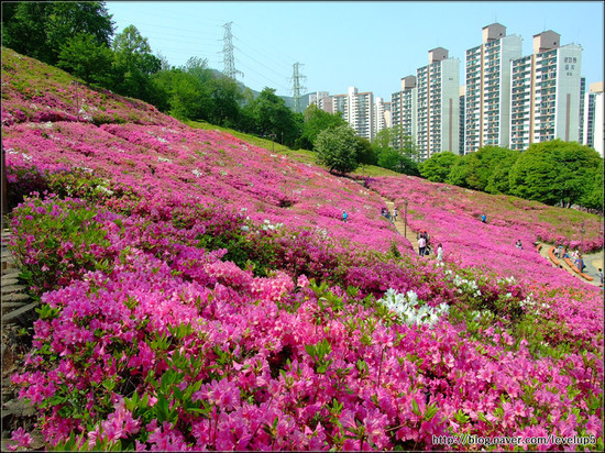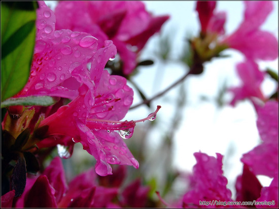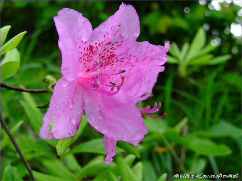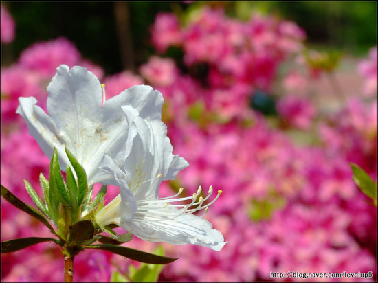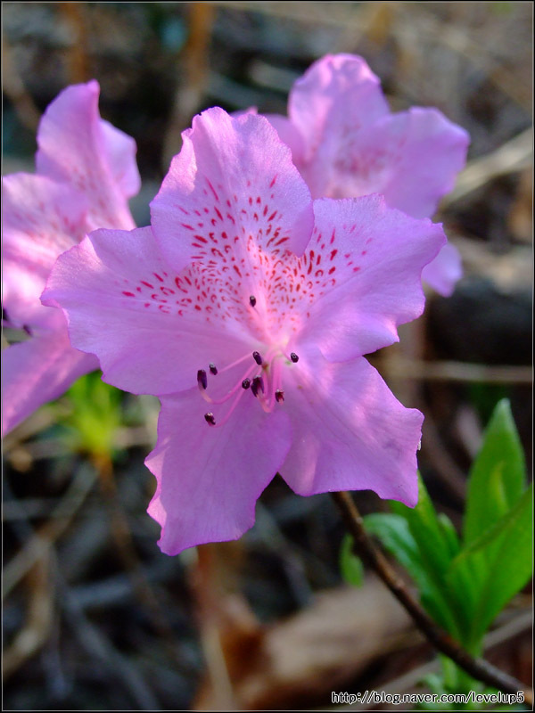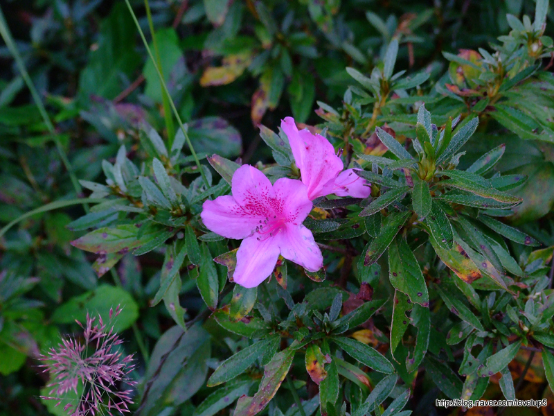 설명 : 일반 철쭉은 꽃잎이 옅은 분홍색에 점이 있고, 잎이 둥글하며, 산철쭉은 진한 분홍색에 잎이 뾰족하다