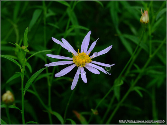 설명 : 한줄기에 한개의 꽃이 피며, 잎은 삐침 형태이고 중간 중간 톱니가 있다.