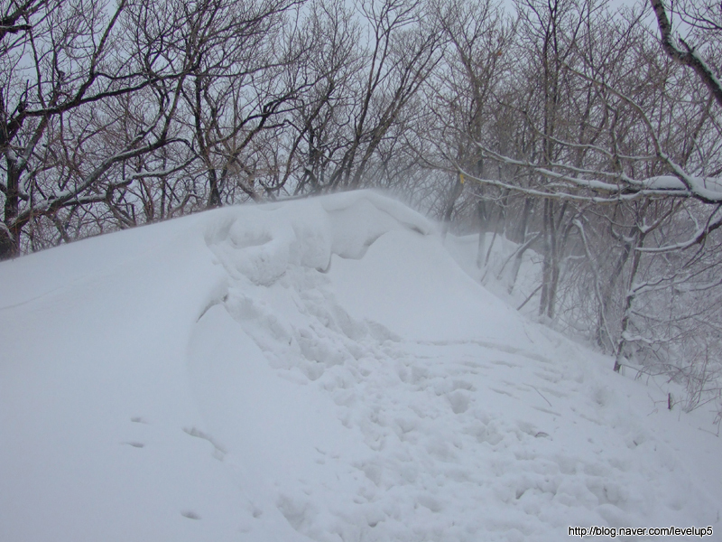 능선에는 구간별로 바람이 날라다 준 눈들이 더 많이 쌓여 있다.
