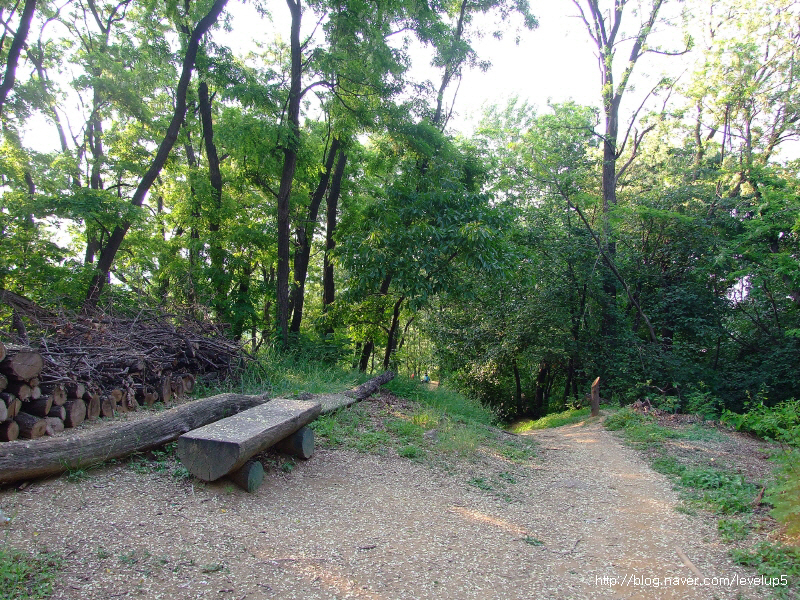 다리가 보이는 데, 건너지 않고 표시목 방향으로 그냥 직진...