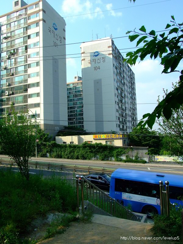 국제산장아파트가 보인다. 내려가서 좌측 인도로 이동
