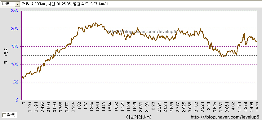 1구간에 135개, 2구간에 120개, 3구간에 69개의 아래와 같은 표시목이 있다.