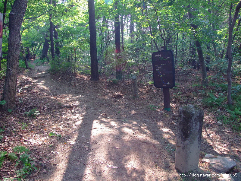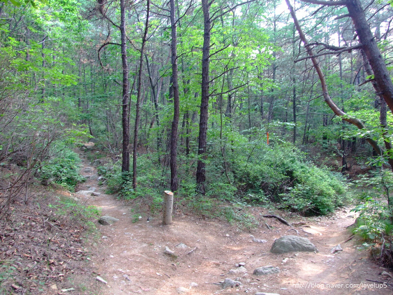 생수천약수터를 지나 표시목이 없는 갈림길이 나오는 데 좌측 내리막으로 간다.