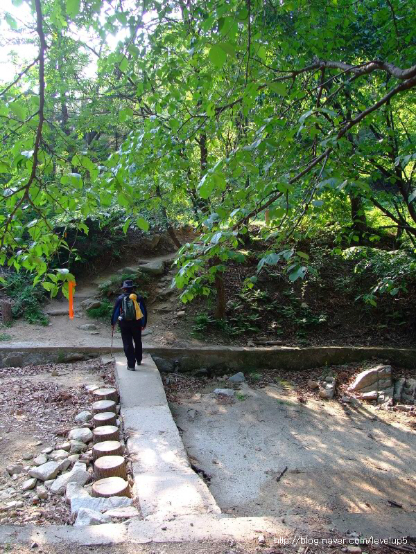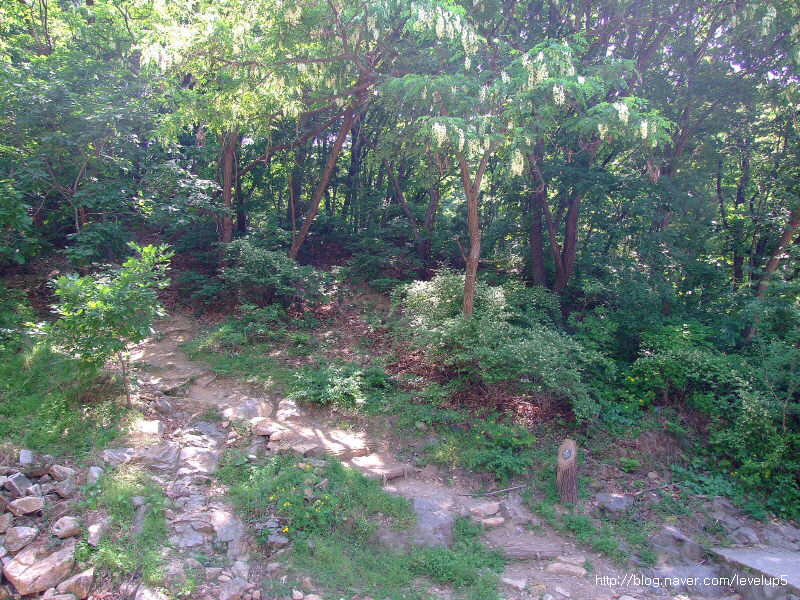 생수천약수터를 지나 표시목이 없는 갈림길이 나오는 데 좌측 내리막으로 간다.