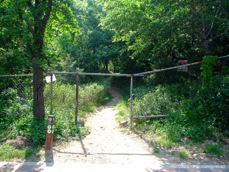 철조망문을 지나 좌측으로 진행방향 표시가 되어 있는 데, 잘못된 것이므로 꼭! 우측(서울대정문) 방향으로 진행한다.