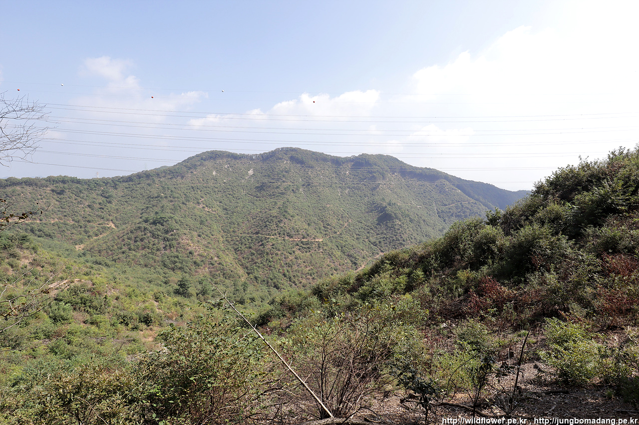 코스모스 뒤로 천호산