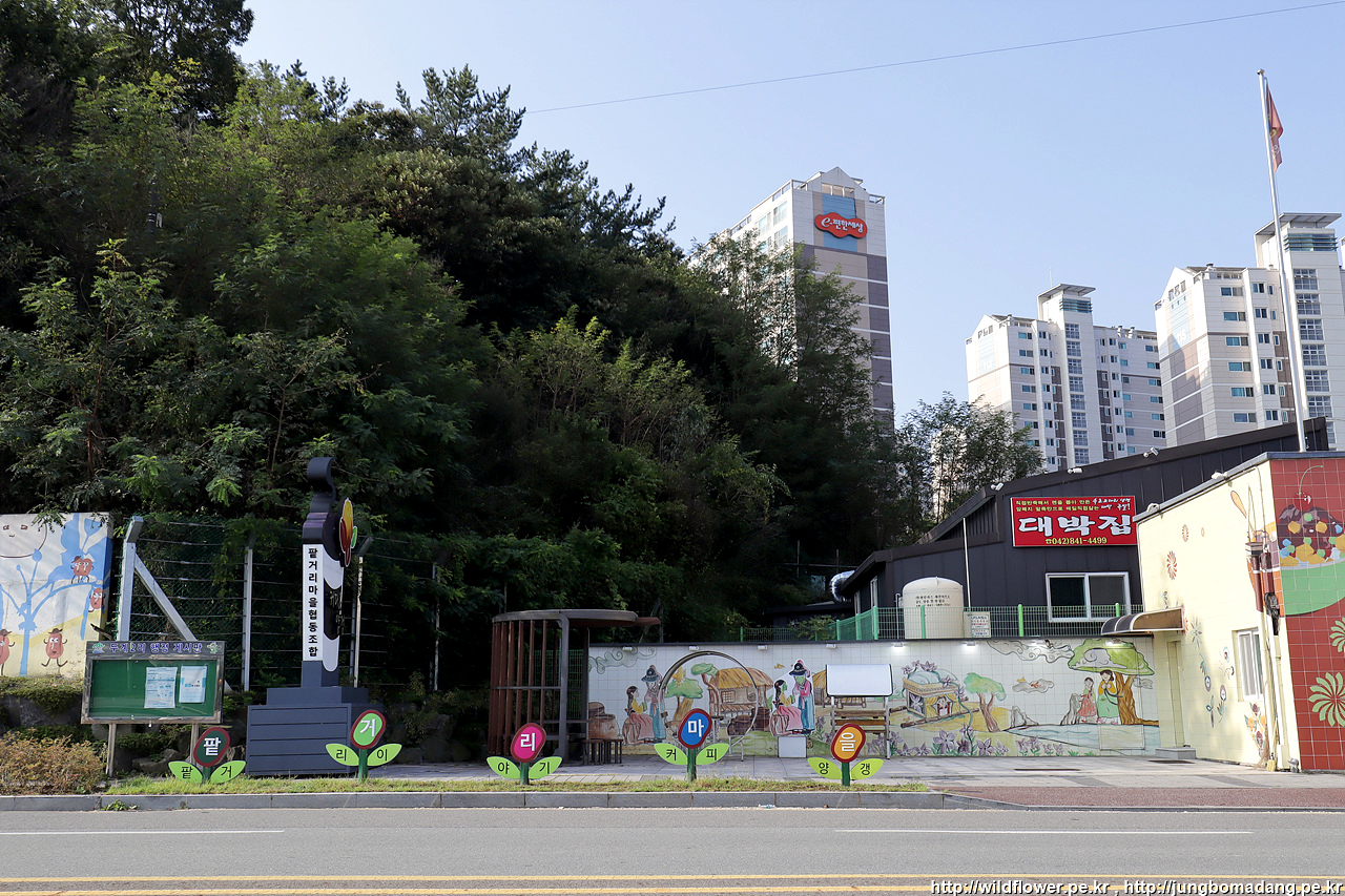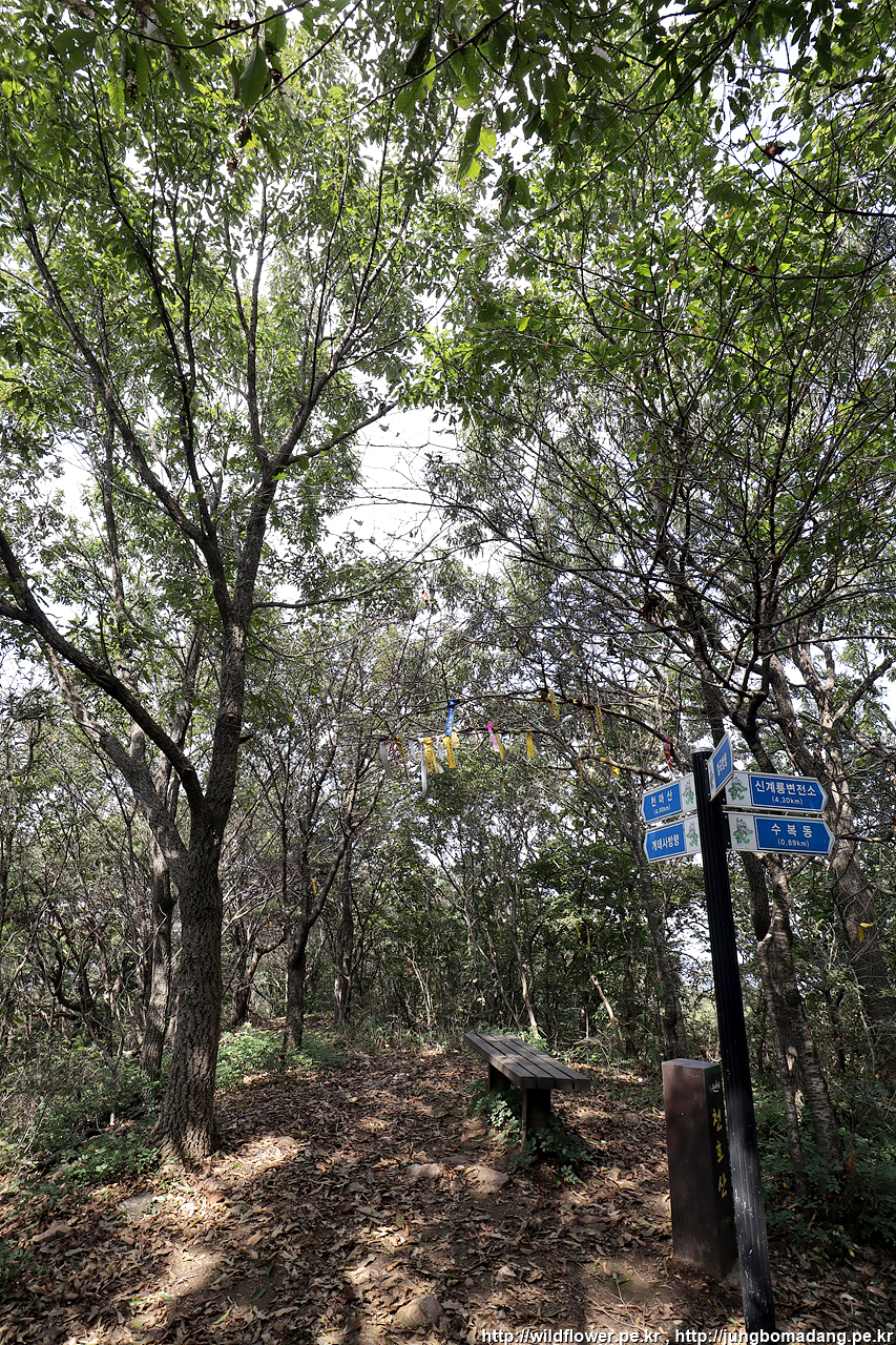 그렇게 촘촘하게 풀이 우거진 등산로의 거미줄을 헤치고, 정상에 도착합니다. 도착 전에 반대편에서 오르시는 어르신과 인사를 했는 데, 연산시장으로 가서 순대국밥 추천 하셔서 바로 하산 하자마자 가보기로 했습니다.