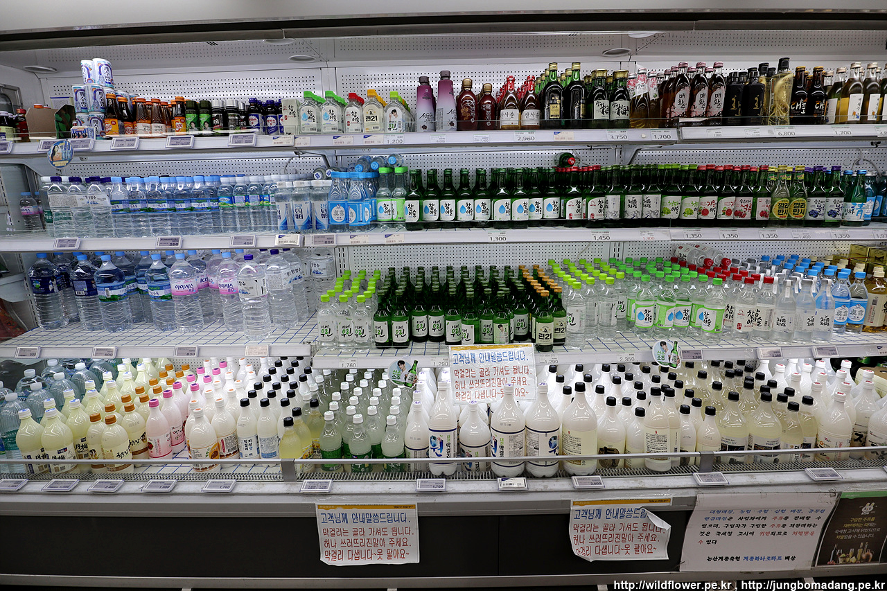 길 건너편에 하나로마트 도착! 막걸리 종류가 참 많네요. 대전쪽 막걸리도 팝니다.