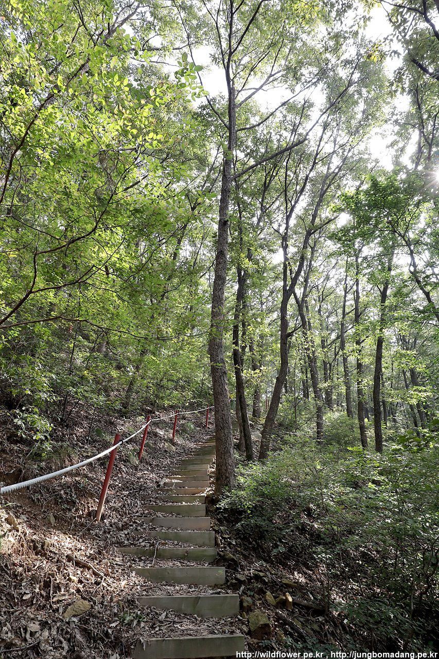 등산로 합류. 우측 위로 계단 따라 오르면 됩니다. 선녀탕 쉼터쪽으로 살짝 틀었으면 이 등산로를 발견 했었을 것 같네요.