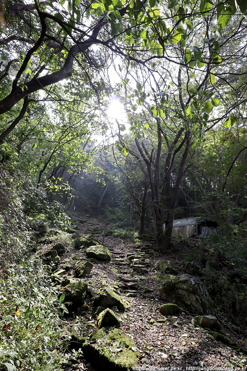 길을 잘못 들었습니다. ㅜ 검둥개가 엄청 짖어댑니다. 분위기 보니 넘어 가야할 것 같은데. 기도도량에 주인이 나오시더니 등산로가 이상하게 되어 있어 종종 헤깔리는 경우가 있다 하셔서 되돌아 가려 했는 데, 다행히 배려해 주셔서 올라서서 좌측편으로 통과해서 가게끔 등산로를 알려 주시네요. 멍뭉이가 지나가는 내 옆에서 킁 킁. 짖는 소리는 사납지만 그리 사나워 보이진 않았습니다.
