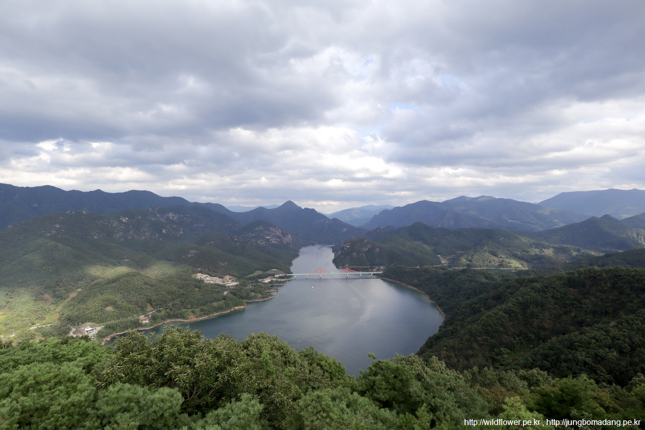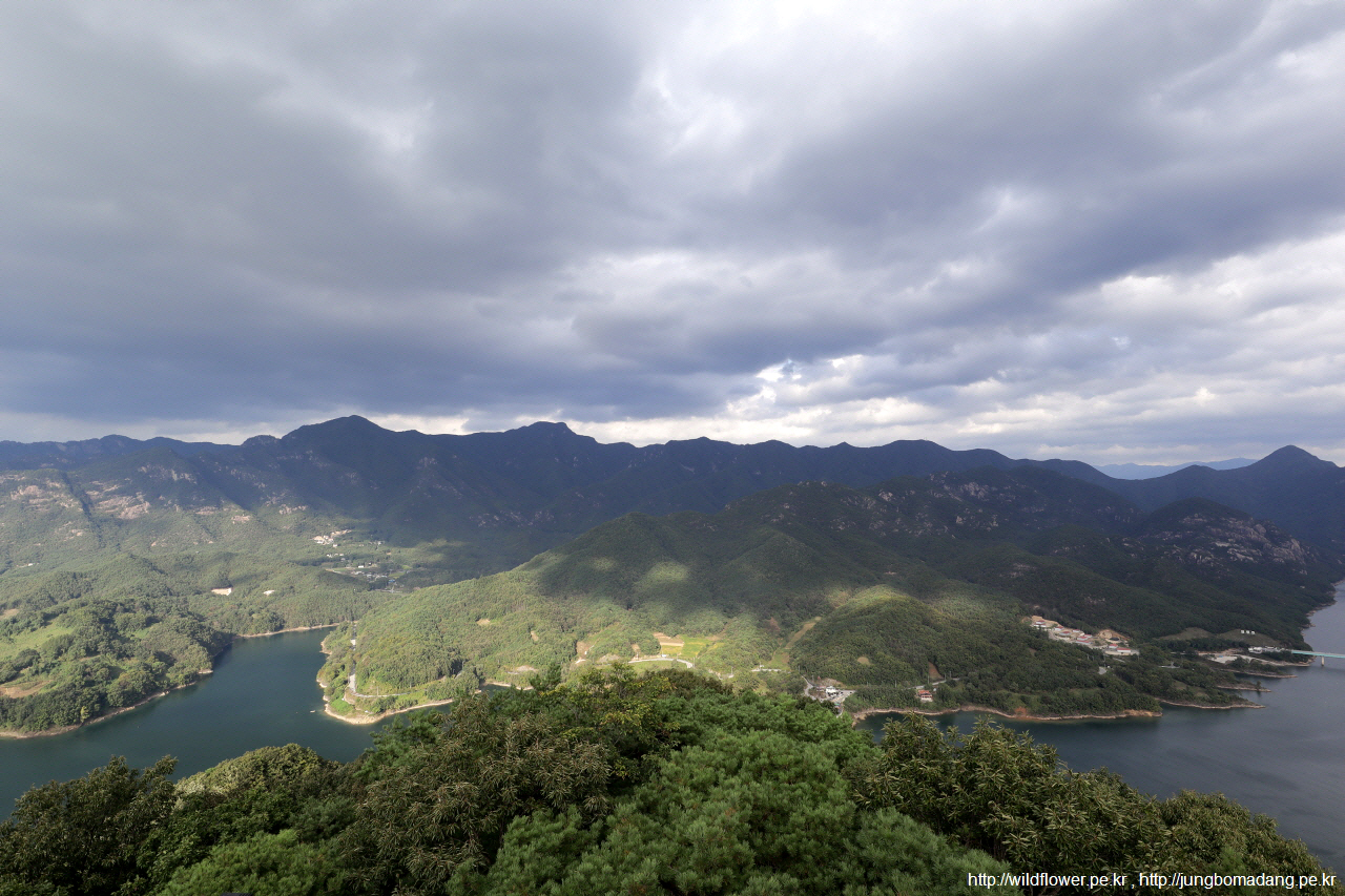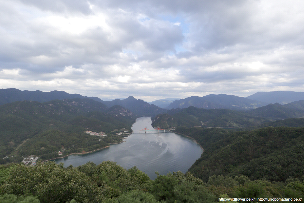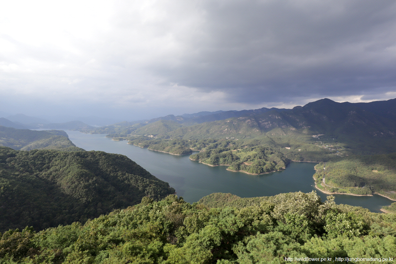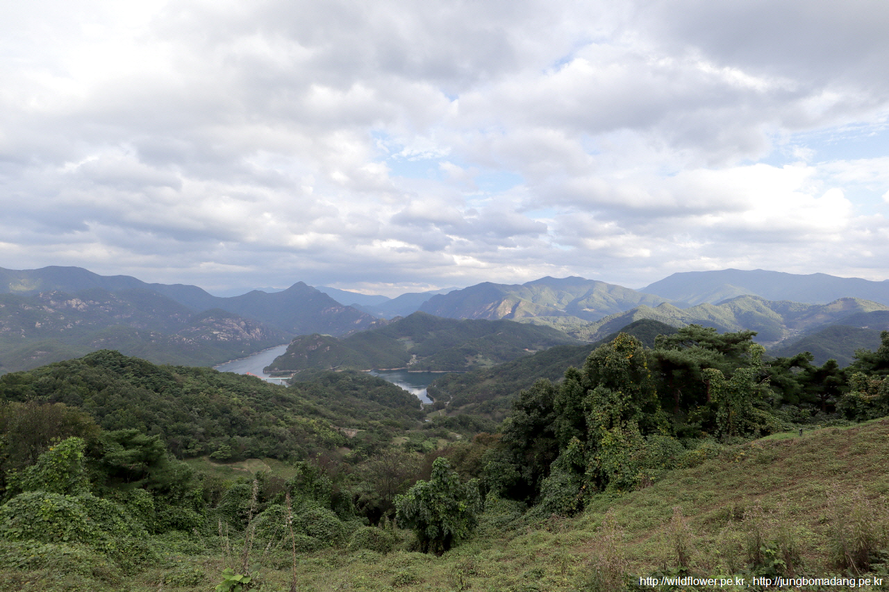 의림지 뒷편으로 우측으로 제천의 진산 용두산, 그리고 좌측으로 백곡산이 보입니다.