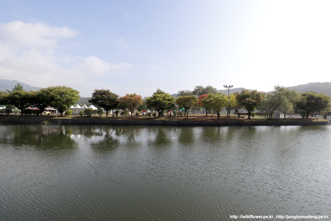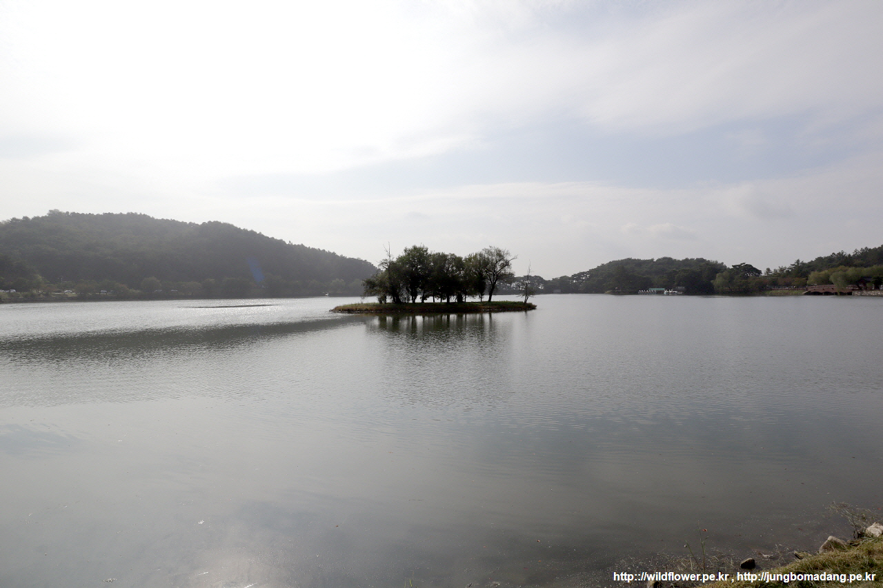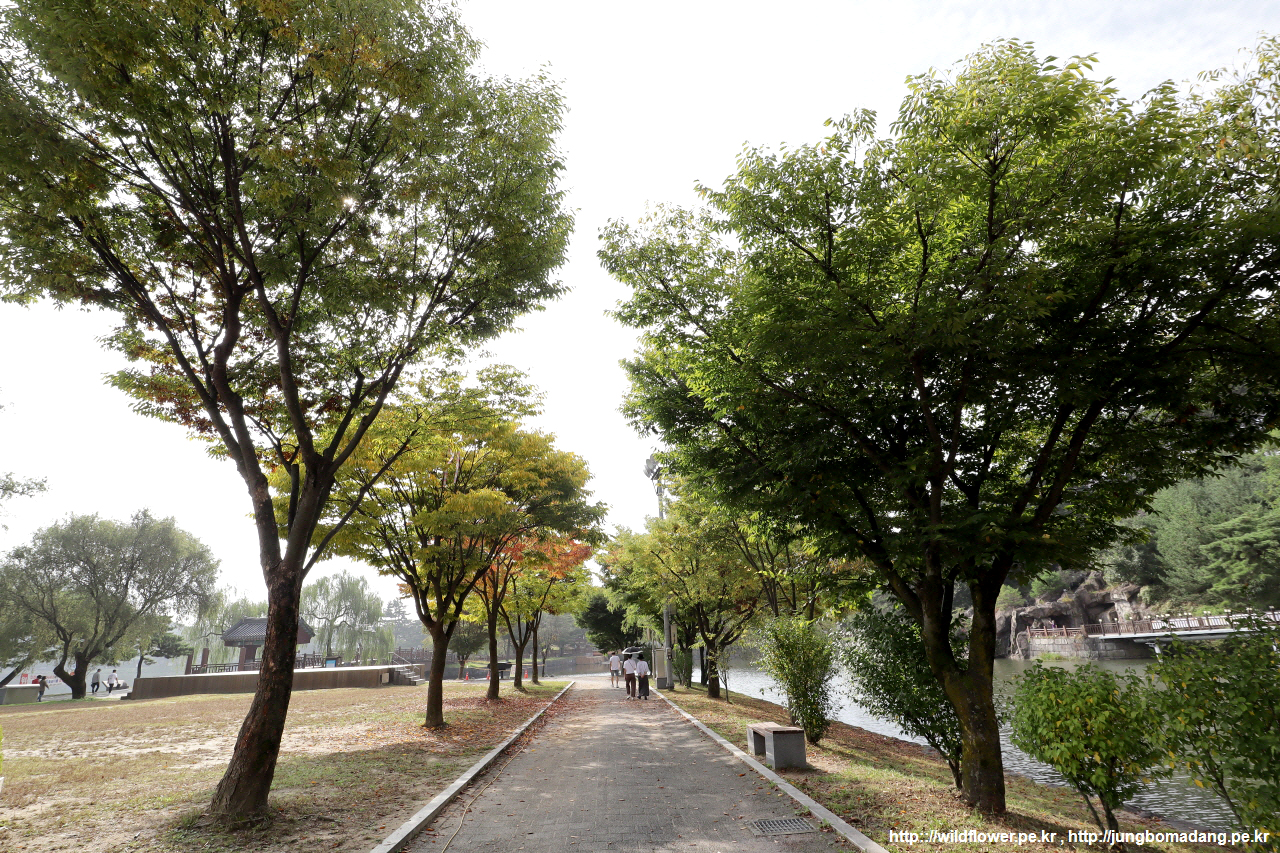 호수 둘레로 벚나무도 심어 있습니다. 벚나무 단풍 뒤로 순주섬