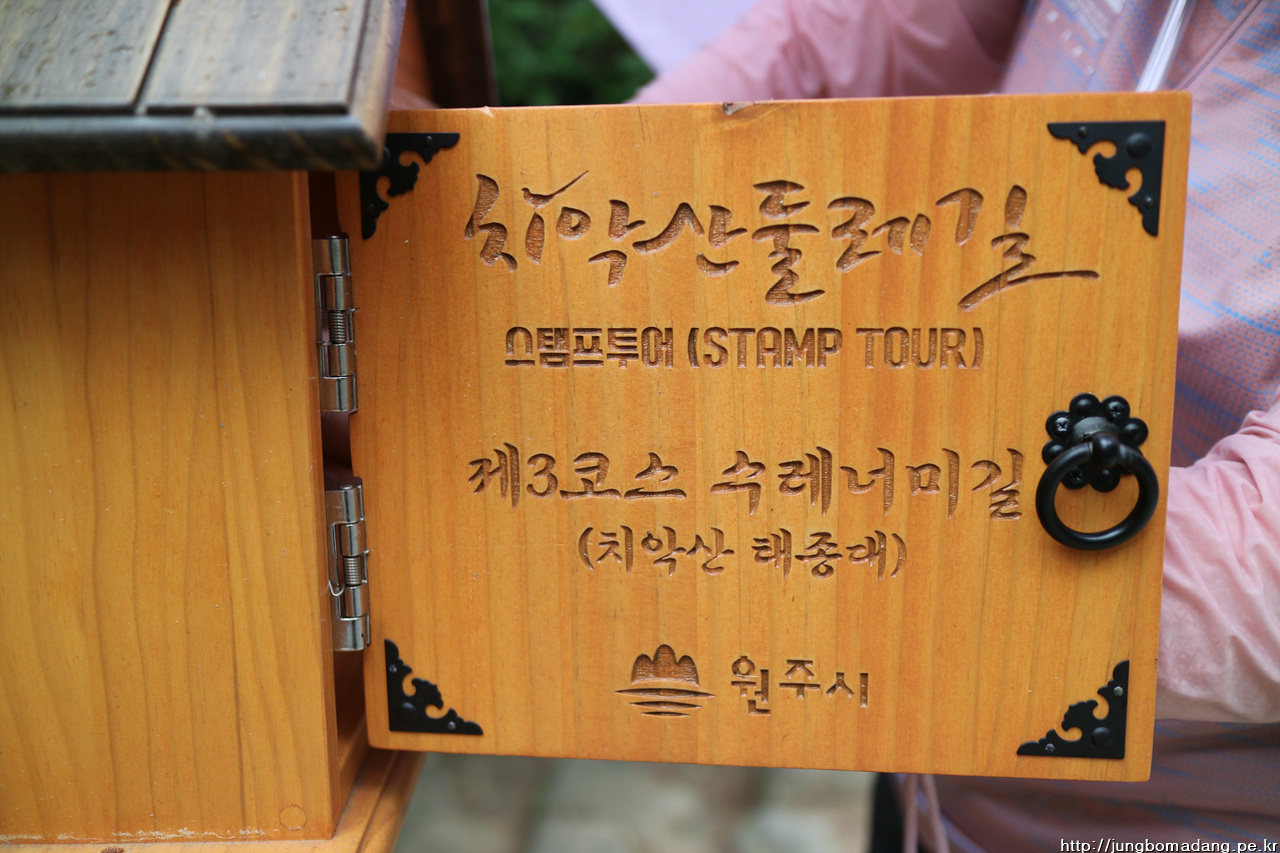 09:29 치악산 구룡탐방안내소 쪽 치악산 3코스 출발점에서 수원파 3인과 반갑게 만나고