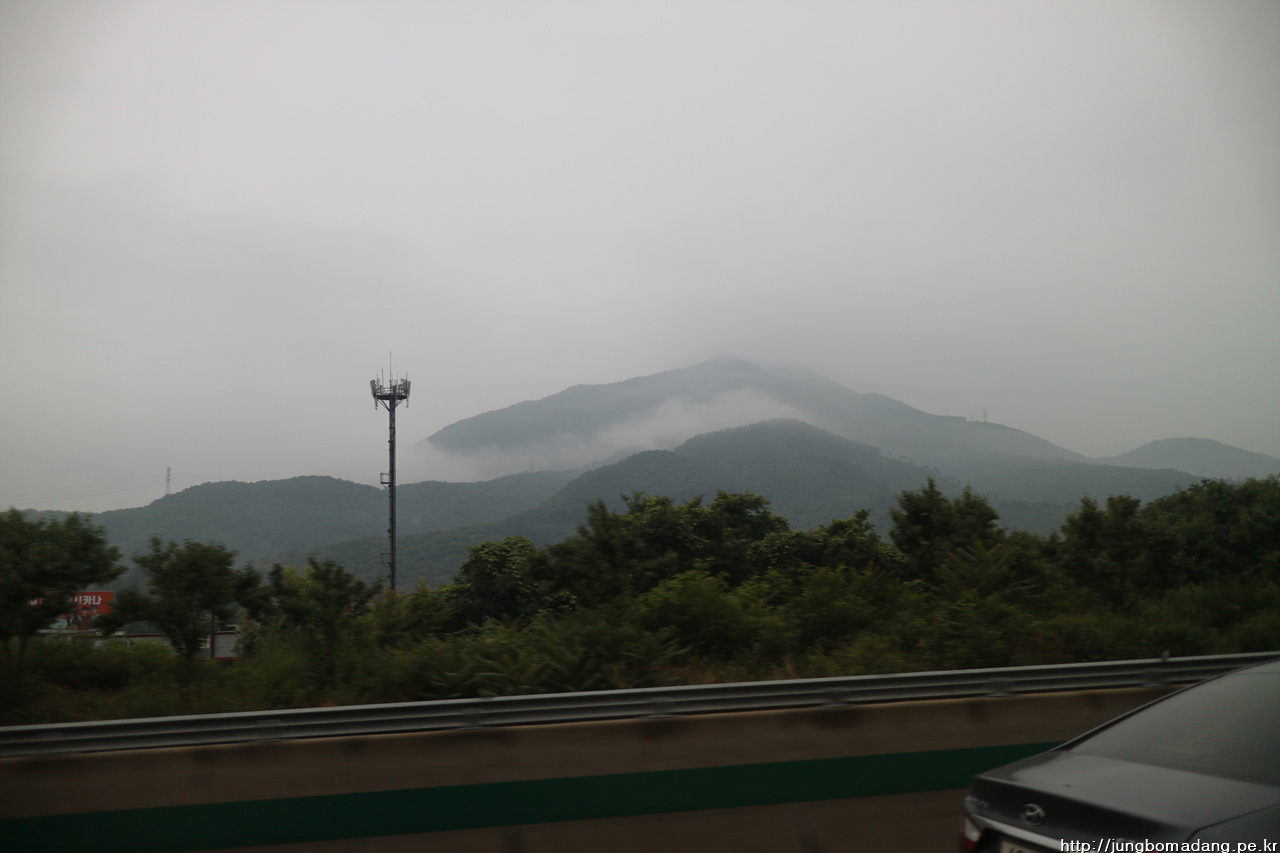 07시가 조금 안된 시간 노원파 7인이 모두 집결되어 출발~ 산에 운무가 띠를 두르고 있네요. 그리 길지 않은 이동거리에 중간 중간 비가 왔다가 그쳤다가 오락 가락