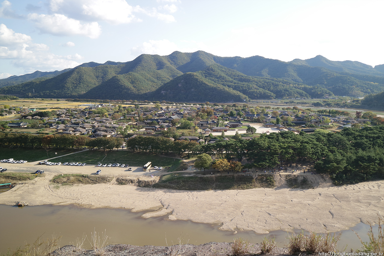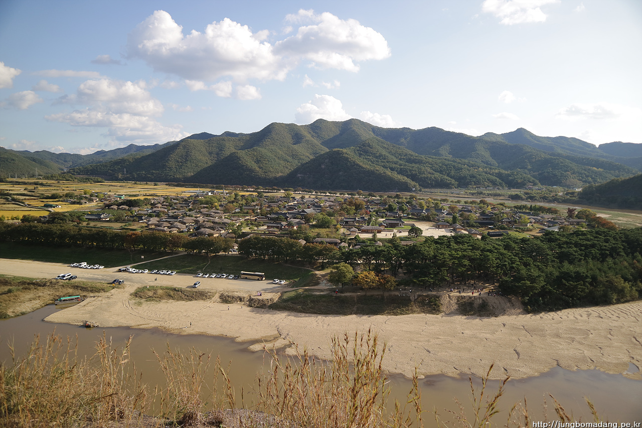 시원하게 펼쳐진 안동 하회마을의 전경이 펼쳐집니다.