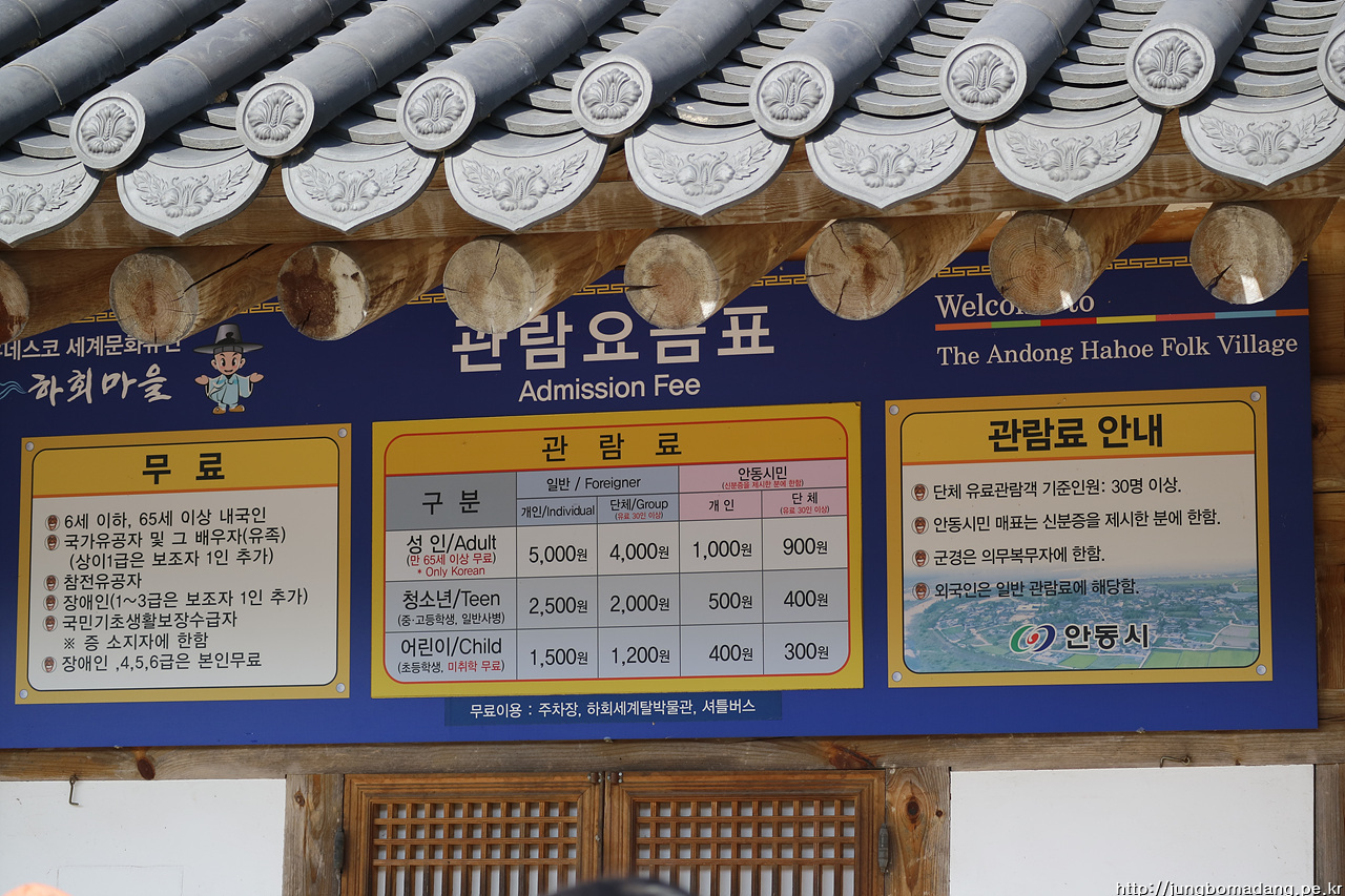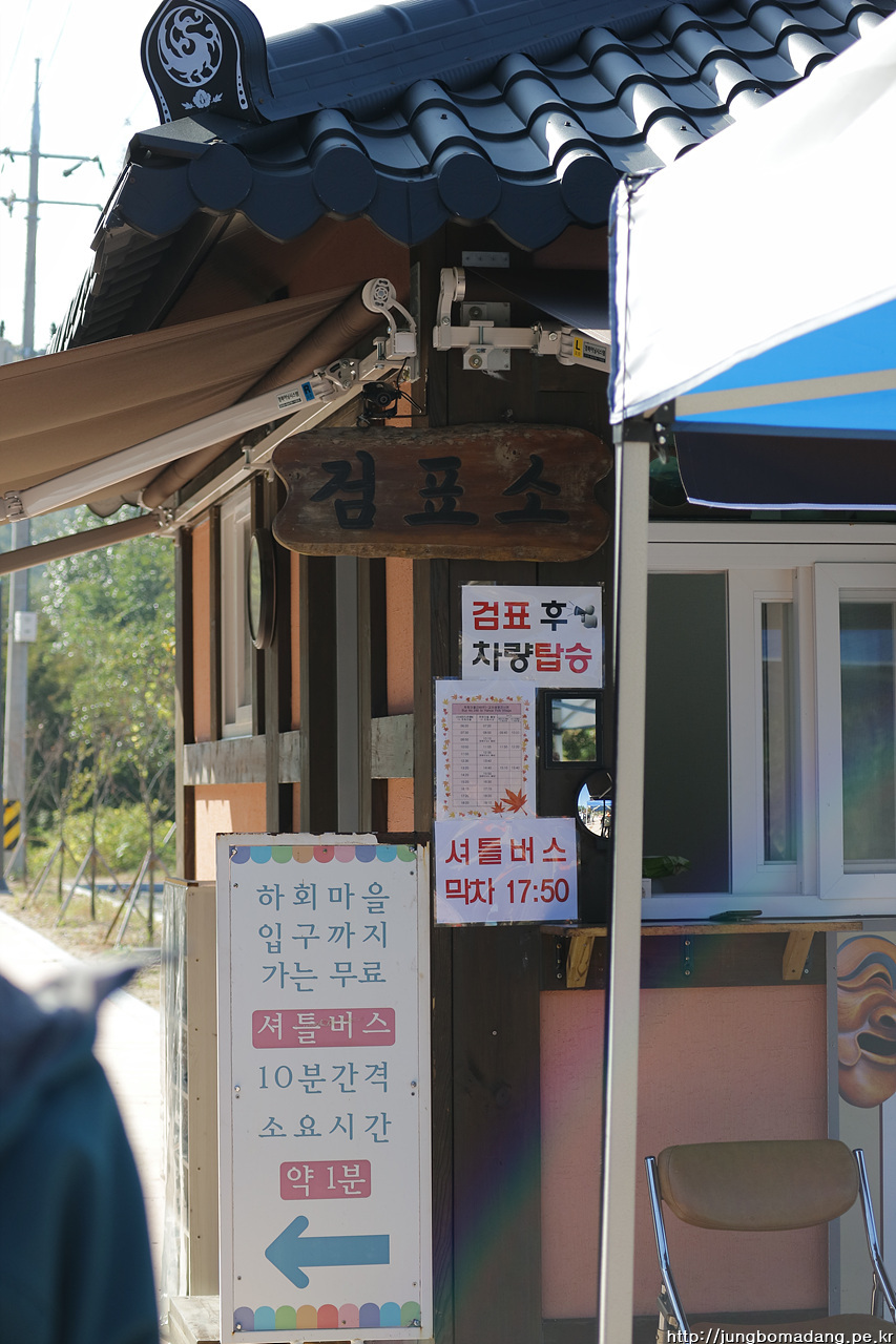 장터에서 하회마을까지 약 1.2Km를 셔틀을 이용하는 데, 그에 앞서 여기서 매표를 인당 5000원씩 지불합니다. 물론 셔틀버스는 공짜!