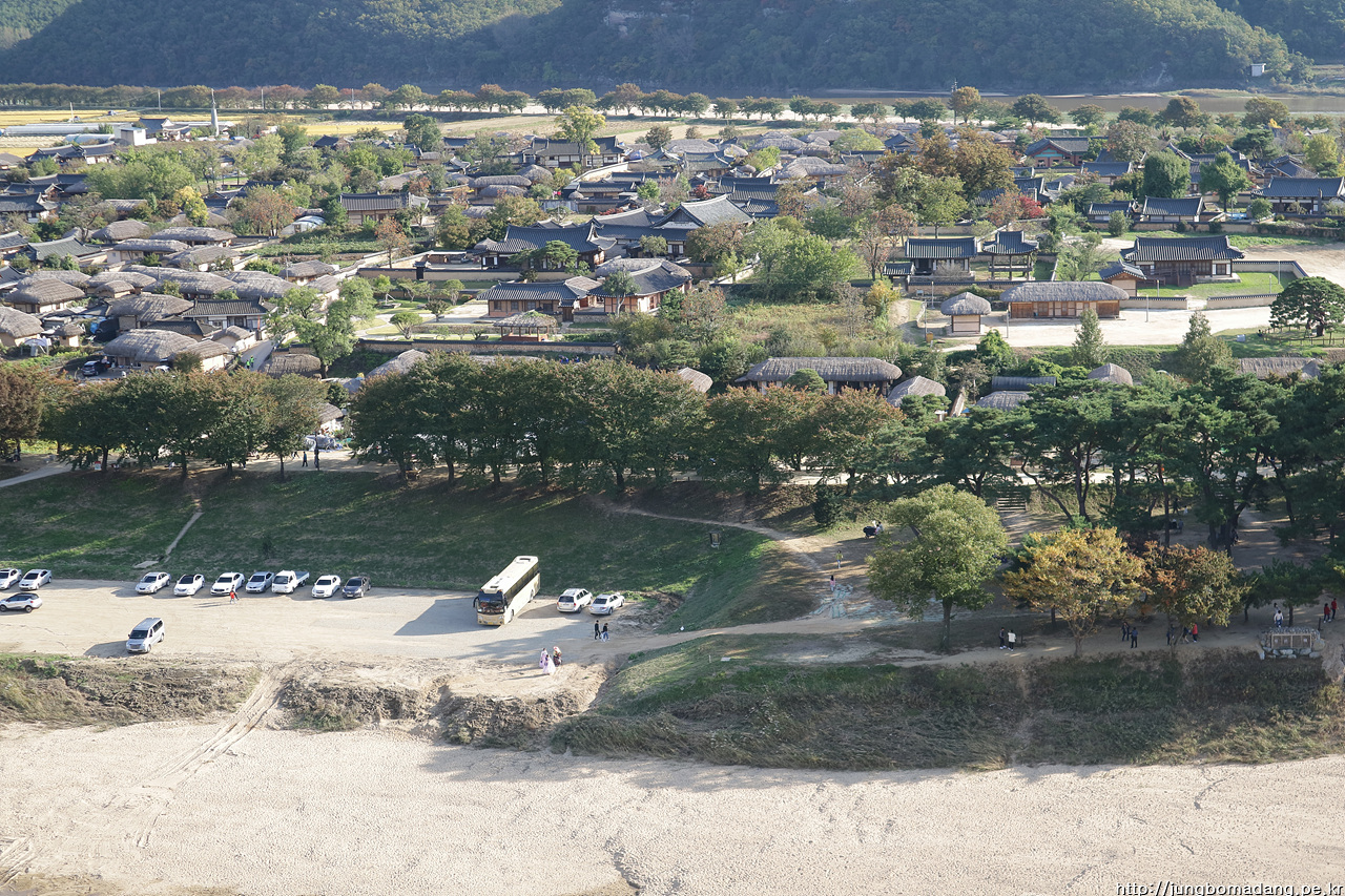 시원하게 펼쳐진 안동 하회마을의 전경이 펼쳐집니다.