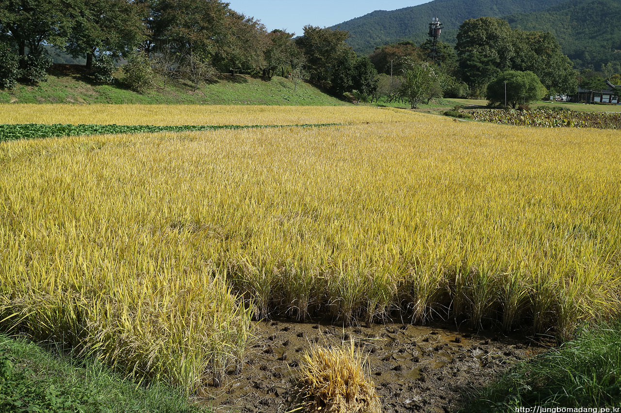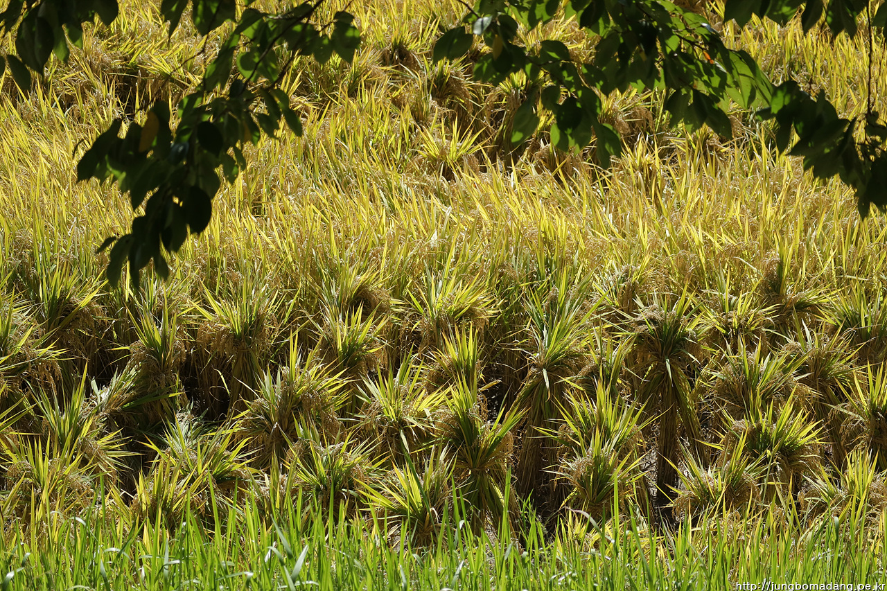 되돌리는 발걸음에 이쁘게 머리 묶은 황금 벼들도 보입니다.