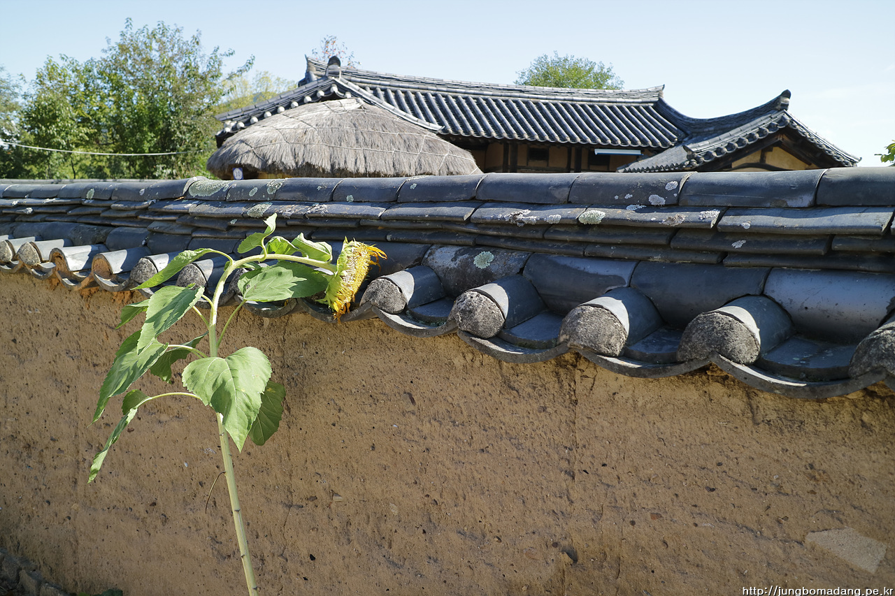 자세히 보면 기와 위에 뭐가 자라고 있는 데, 와송입니다.