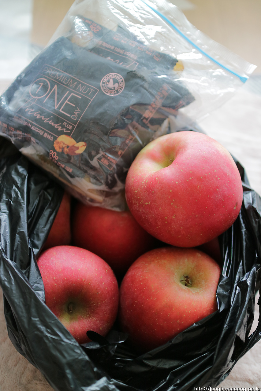 집에 돌아오니 이렇게 나눠준 간식과 공동구매한 사과도 남네요