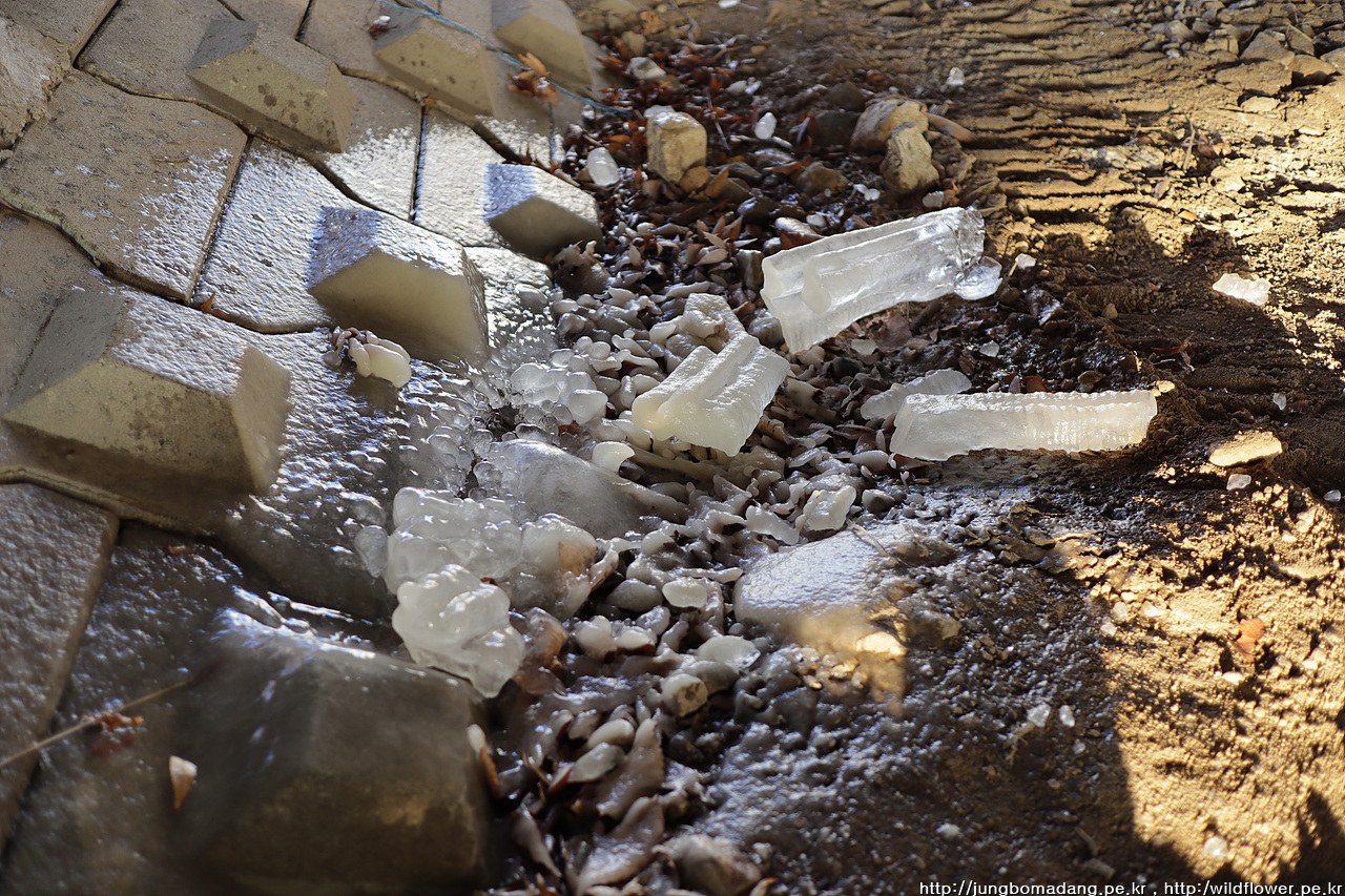 다리의 배수관에 맺힌 고드름은 낙하하여 지금이 겨울이라고 알려 줍니다.