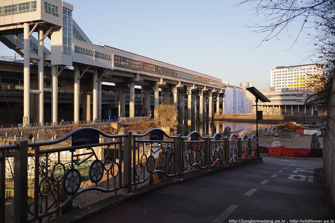 개천을 건너는 데가 없는 거 같아 다리 위로 겨 올라 왔더니 떡하니 징검다리가 보이네요 ㅋㅋㅋ 이런!