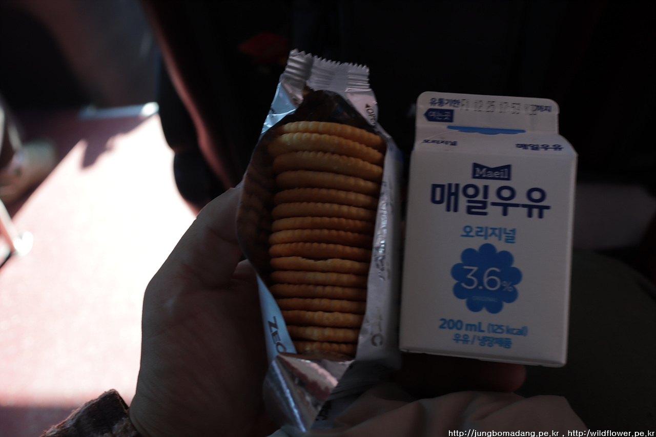 11:45 동서울 터미널에서 버스 타기전 간단히 구매한 간식을 나누어 먹음서, 2시간 30분의 여정을 이어갑니다.