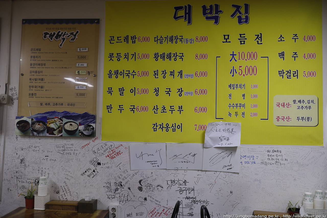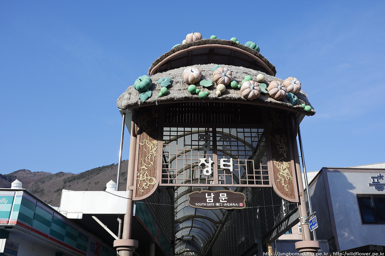 정차중인 택시는 커녕 지나가는 택시도 안보이는 겁니다. 눈치 까고 잽싸게 콜택시 부르니 3분 정도 이내에 도착하고, 기본요금(3300원)에 시내에 도착하네요. 목적지에 가는 버스가 16시경이라 시장에서 간단히(?) 요기를 하기로 합니다. 정선오일장은 2일 7일로 오늘은 19일이니 문 연 가게가 많지는 않습니다.