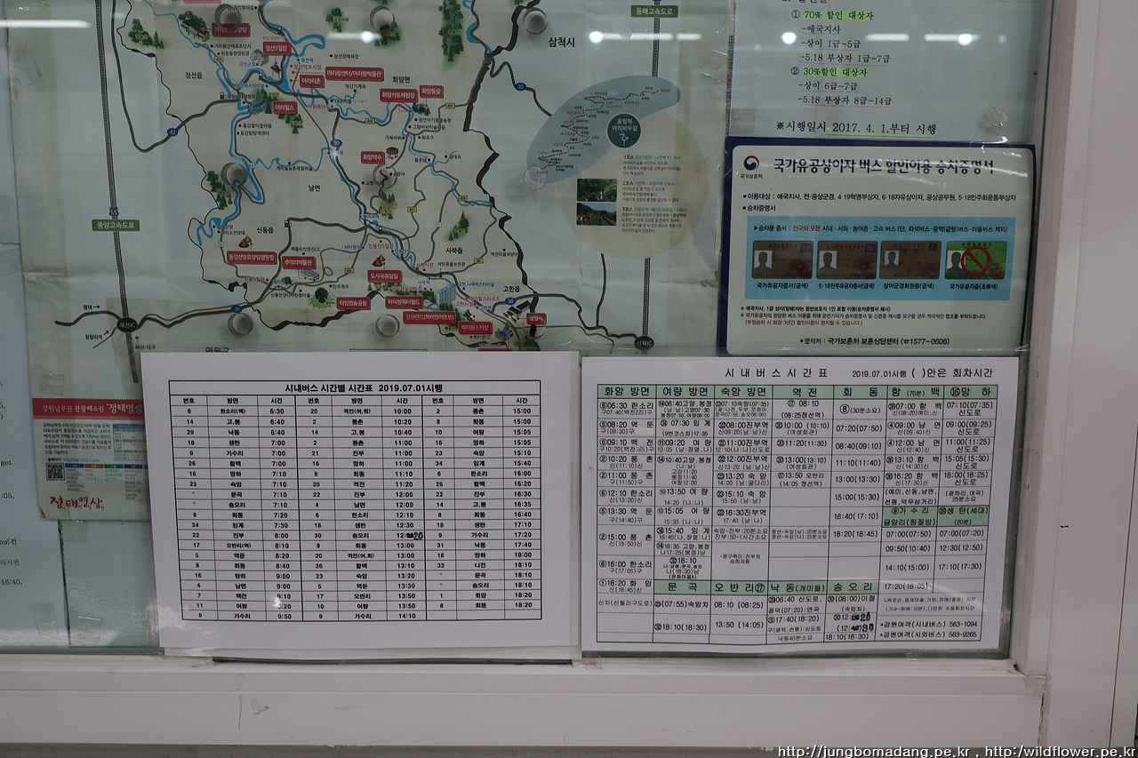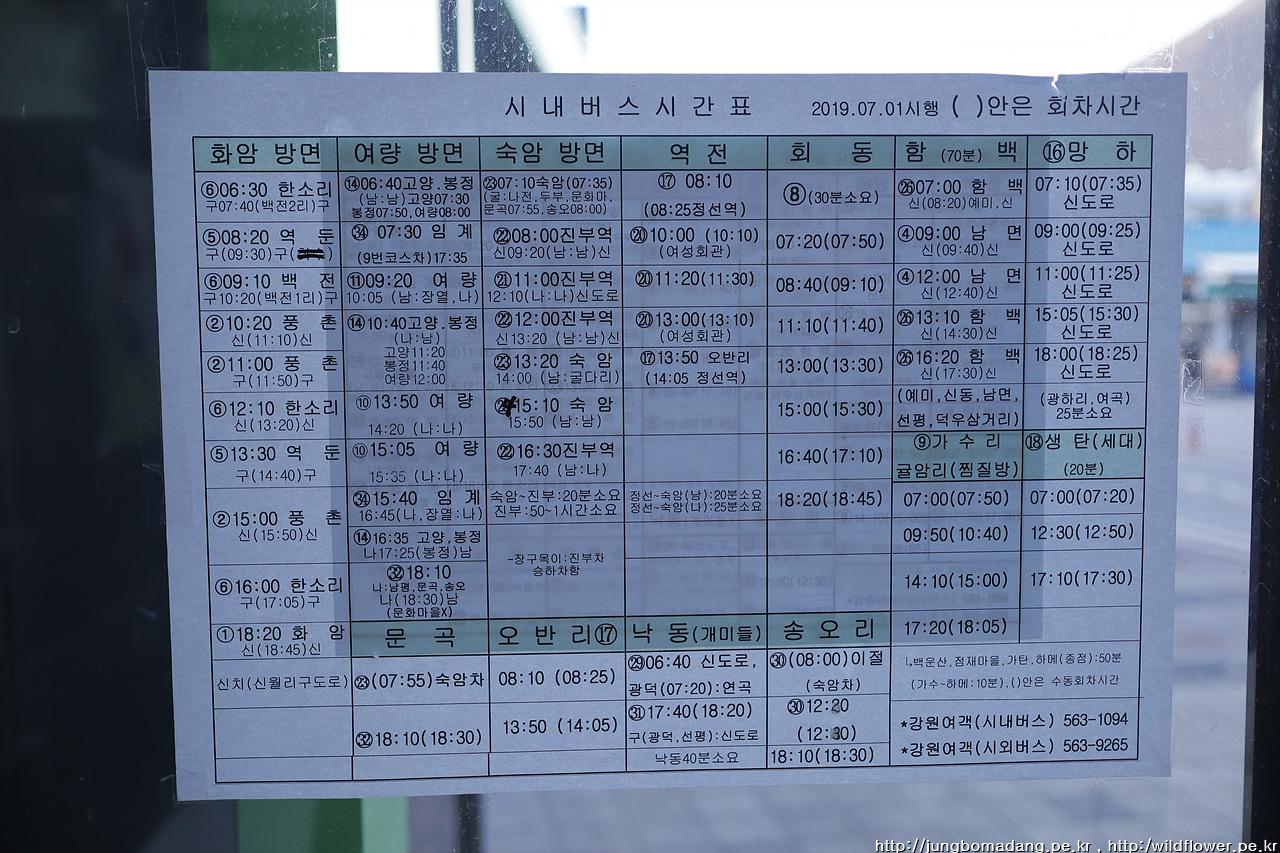 2019년 7월에 변경된 시내버스 시간표입니다. 화암 방면을 보니 한소리 하고 잡네요 ㅋㅋ