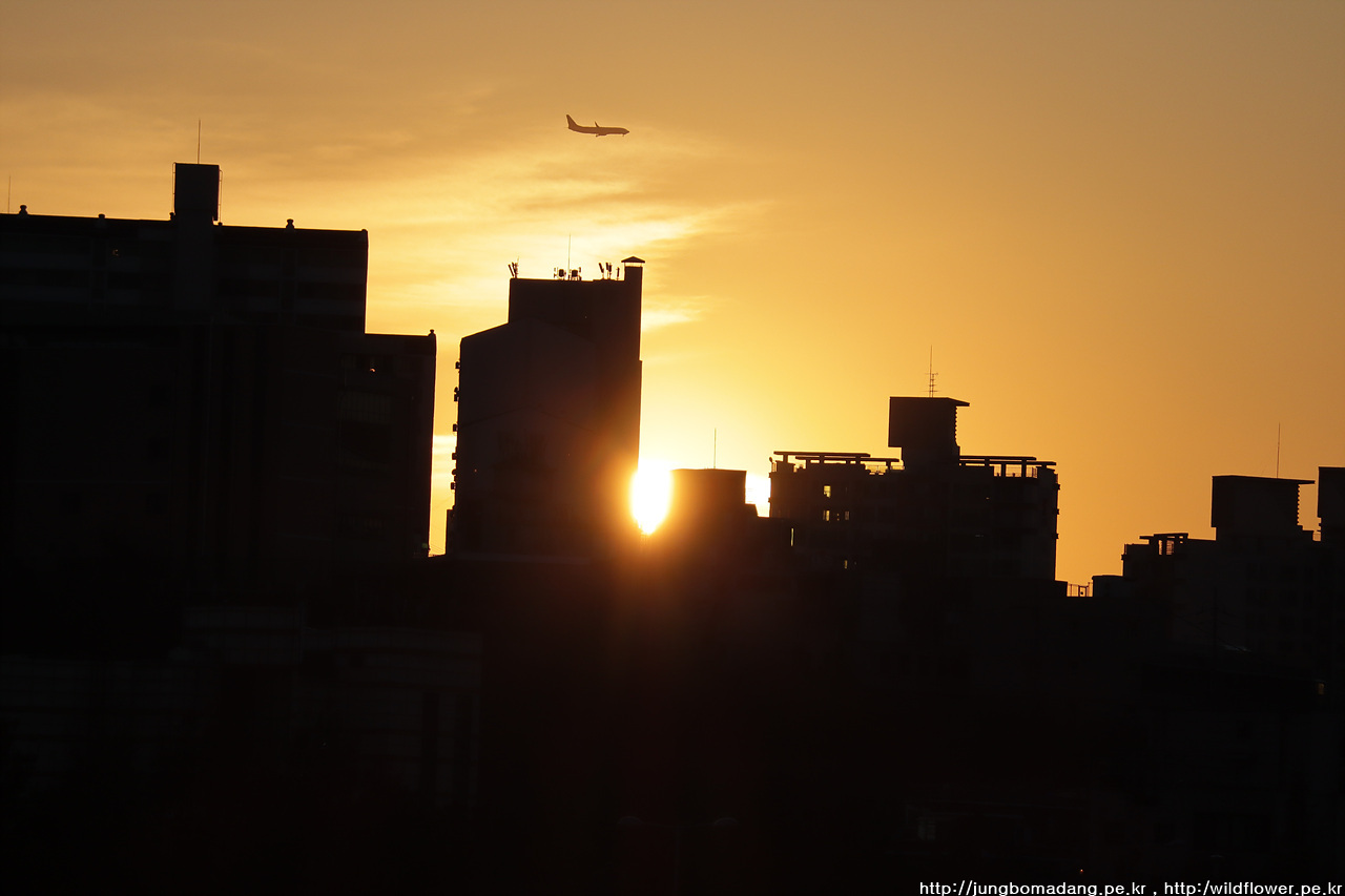 일몰을 간신히 잡으려 한강대교 위로 오는 데, 비행기도 잡아 버리네요.