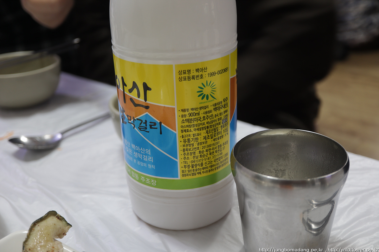 두둥~ 어제는 홍어무침 무한 서포트 사랑을 보여 주신 청풍동님이 오늘은 백아산 막걸리를 추천해 주시는 데, 아 글쎄 세상에나! 이 식당에 백아산 막걸리를 파는 겁니다. ㅠㅠ 그래서 고민 없이 식당에 있는 막걸리를 싹쓸이 하고