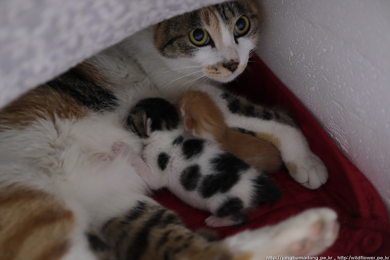 식당에서 거두어 키우고 있는 고양이가 새끼를 낳았다고 하여 살짝 봅니다.