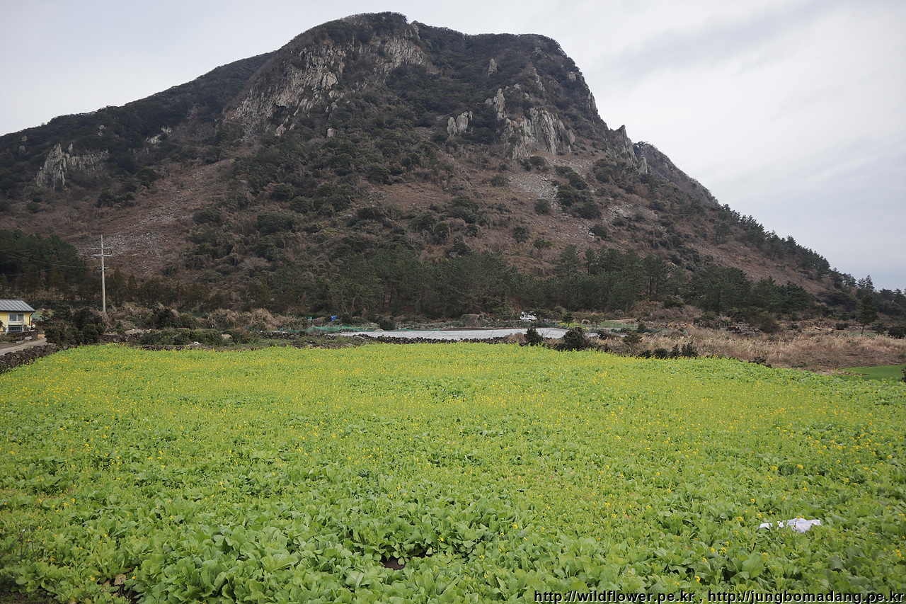 송악산을 지나고 있는 데, 아직 덜핀 유채꽃과 함께 담아 봅니다.