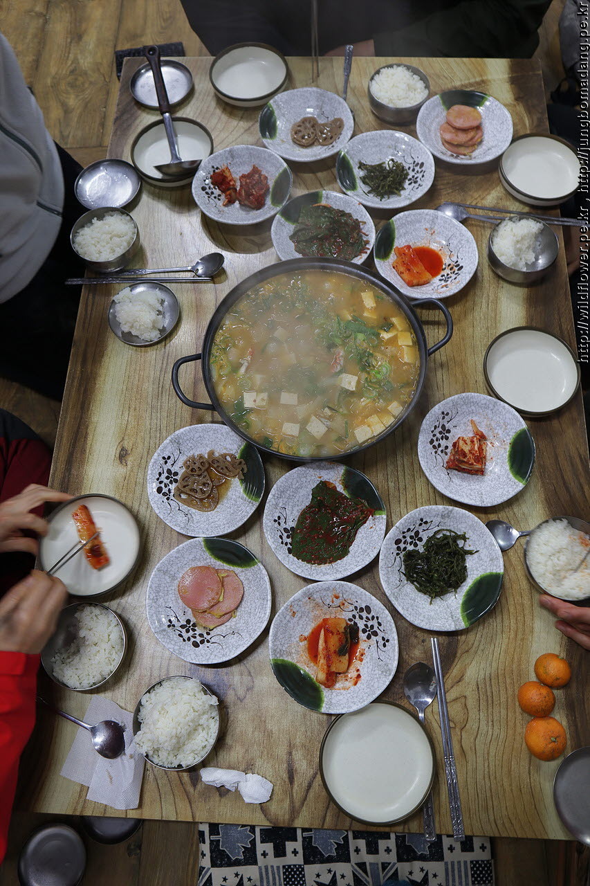 인원은 6명인데 공기밥이 3개 밖에 없다 그래서 어쩔수 없이 나누어 먹기로 하며 된장찌개로 통일합니다.