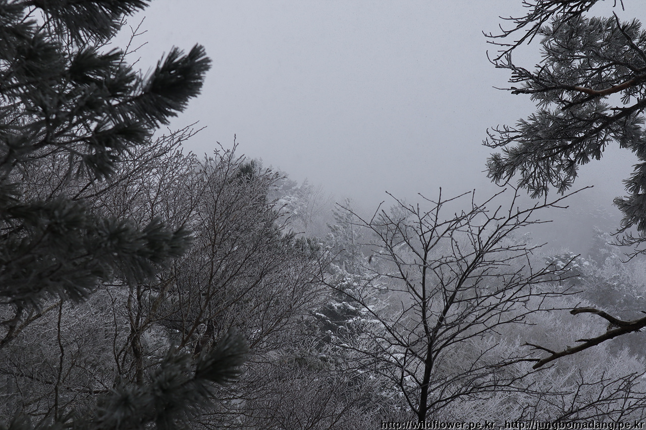 슬슬 나무에 맻힌 옅은 상고대가 더 높은 곳의 상황을 기대하게 합니다.