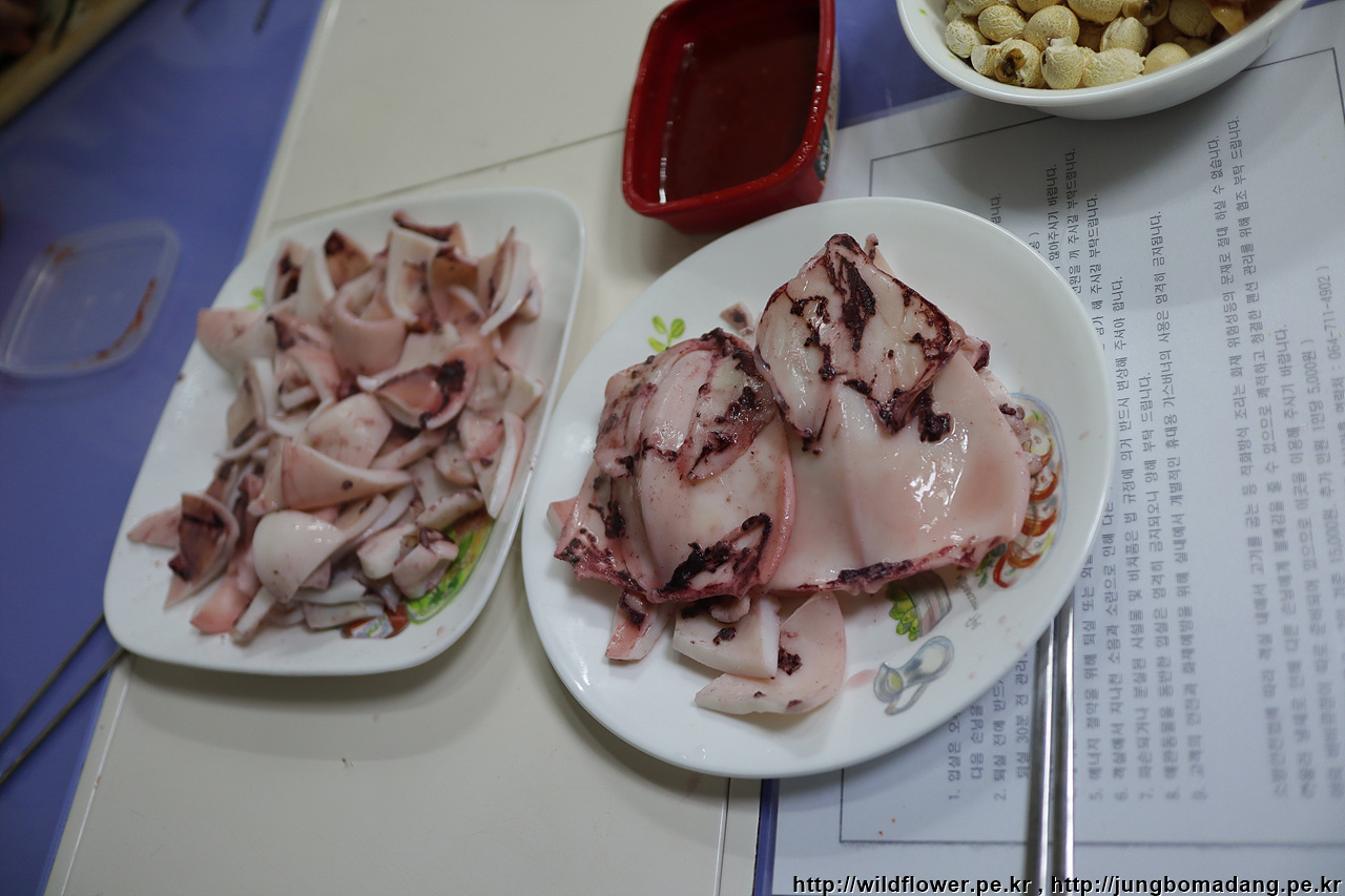 문어가 장렬히 숙회되다.