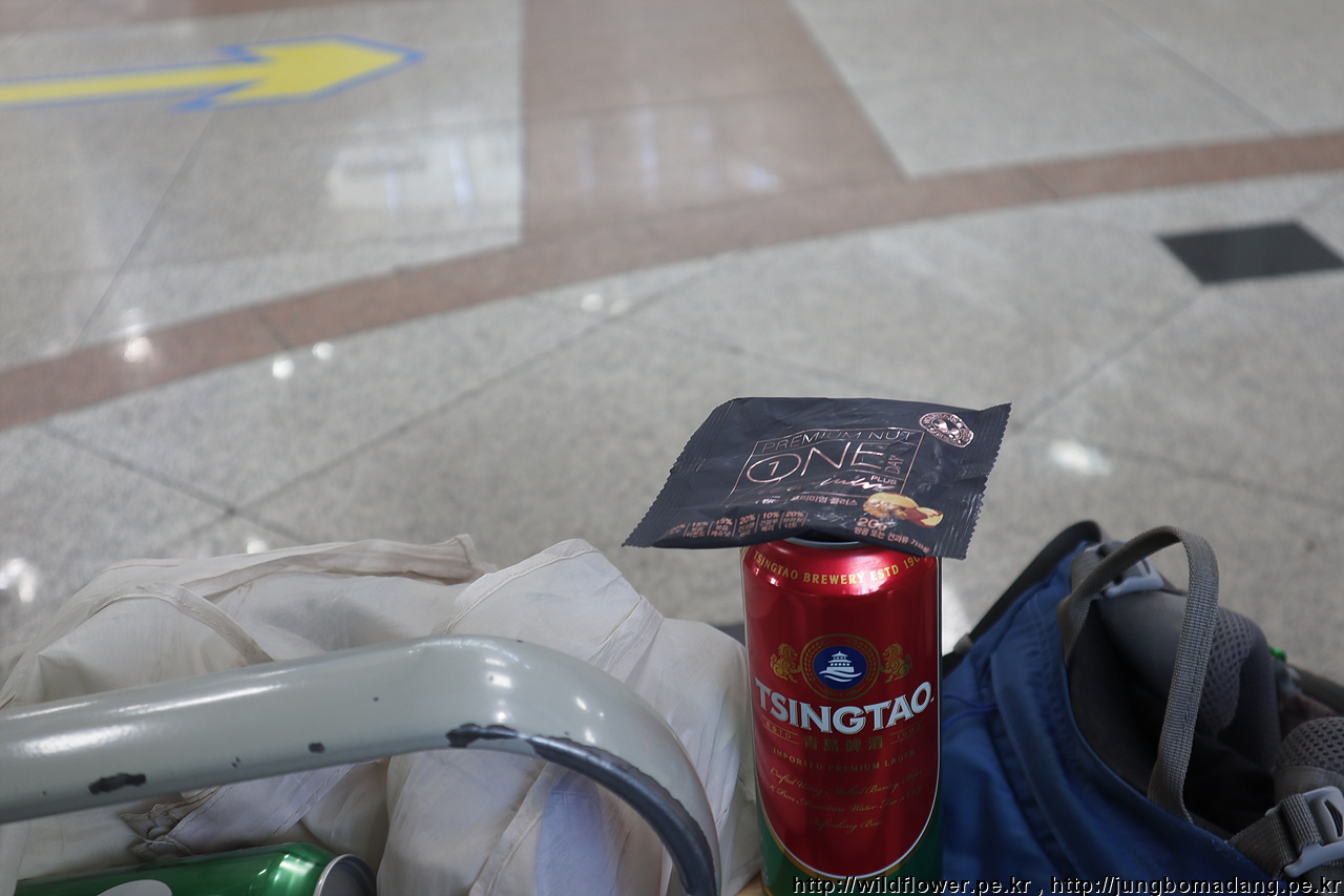남은 맥주 대합실에서 콸콸. 안주는 어제 동문시장에서 사서 남은 콜라비 반조각