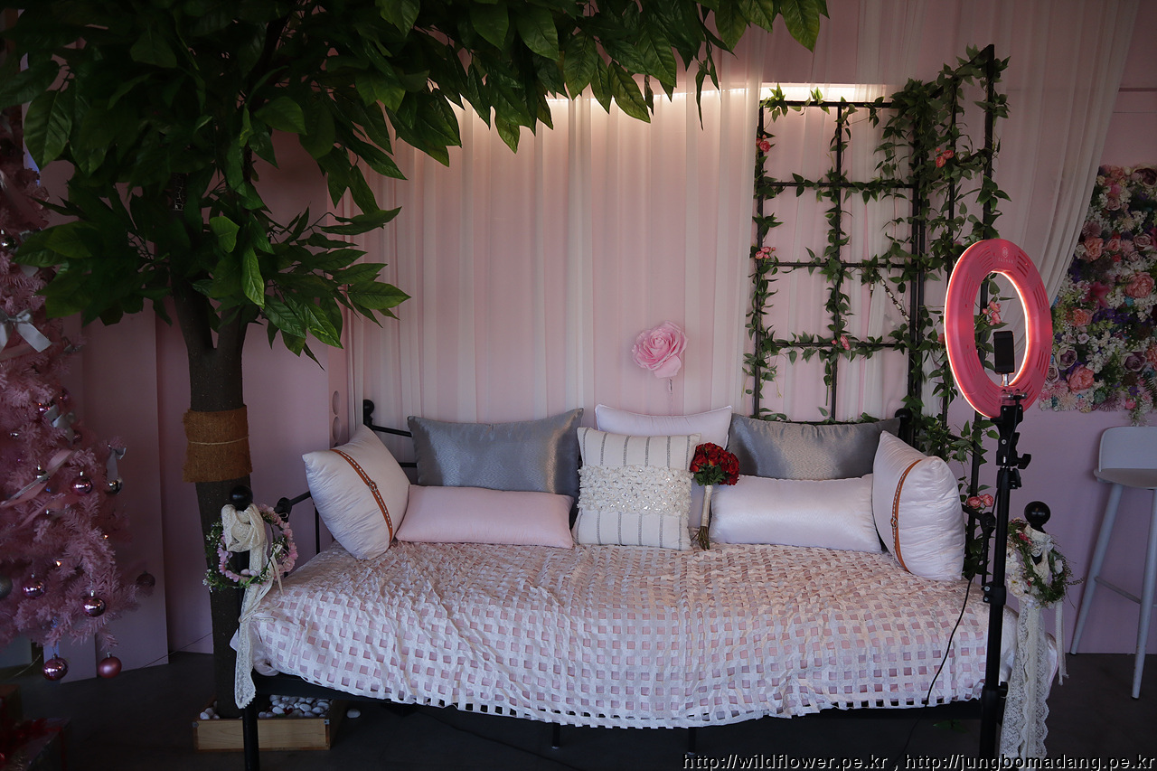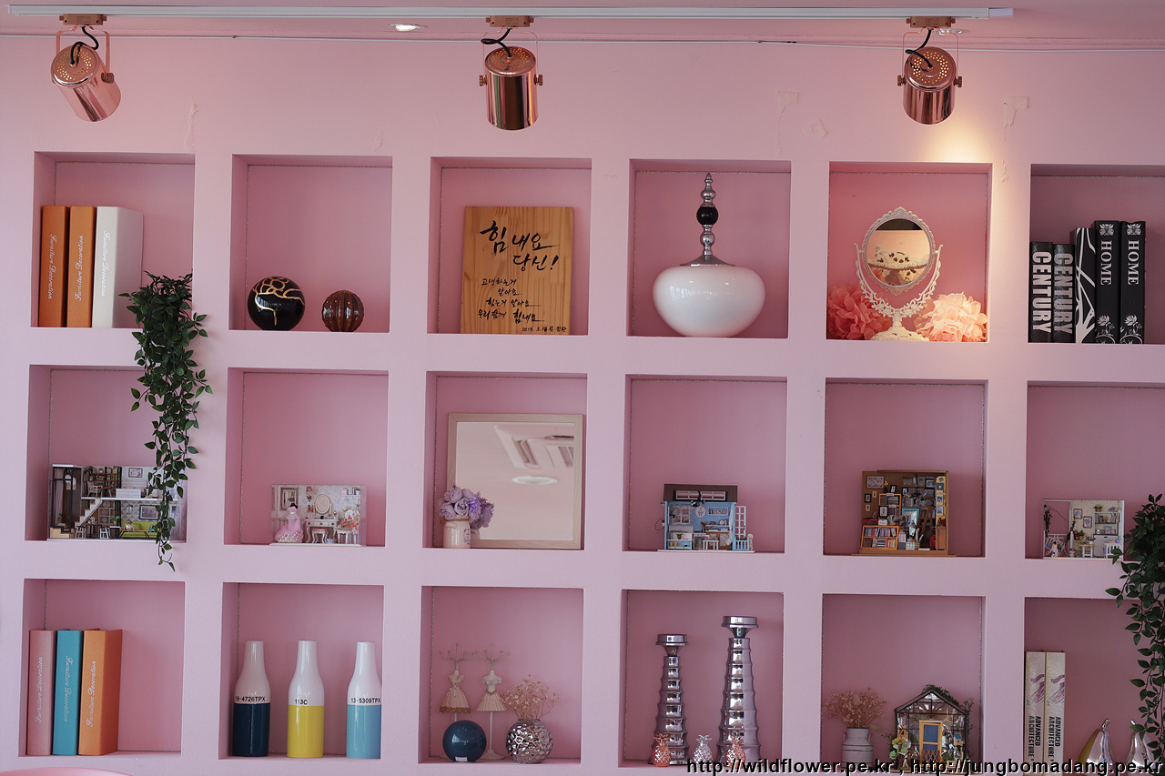 카페가 핑크핑크 한데, 그보다도 더 중요한 건 우리밖에 없다는 겁니다.