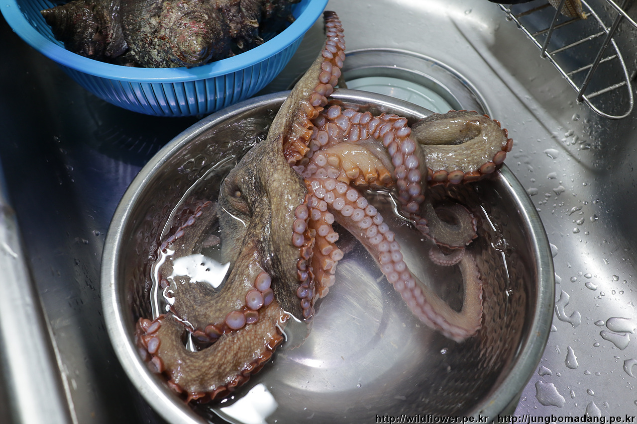 문어도 사고, 방어도 작은거 사고 서비스로 전복도 한마리 받고