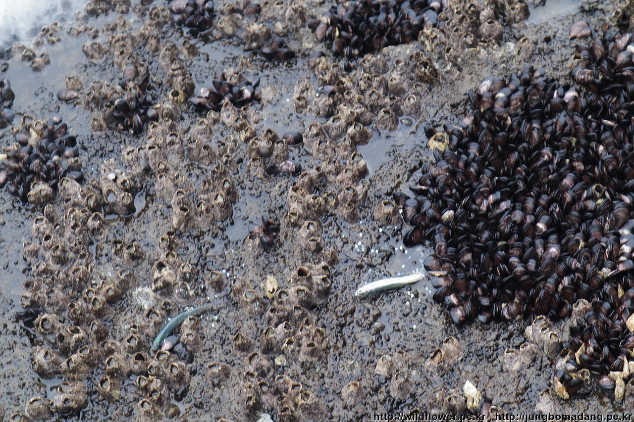 파도에 쓸려 온 멸치가 보이네요.