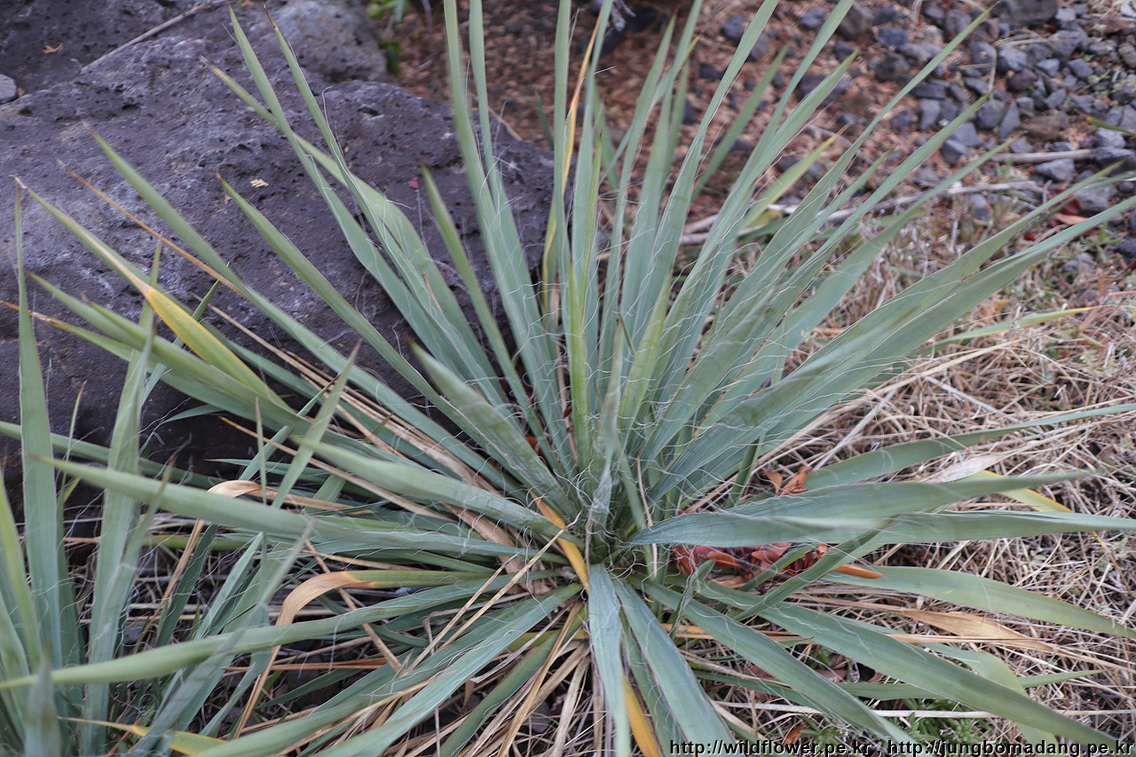 실유카 - 꽃은 안피었는 데 왜? 실유카인가 궁금증이 바로 풀립니다. 잎에 가느다란 실이 바람에 살랑~ 살랑~