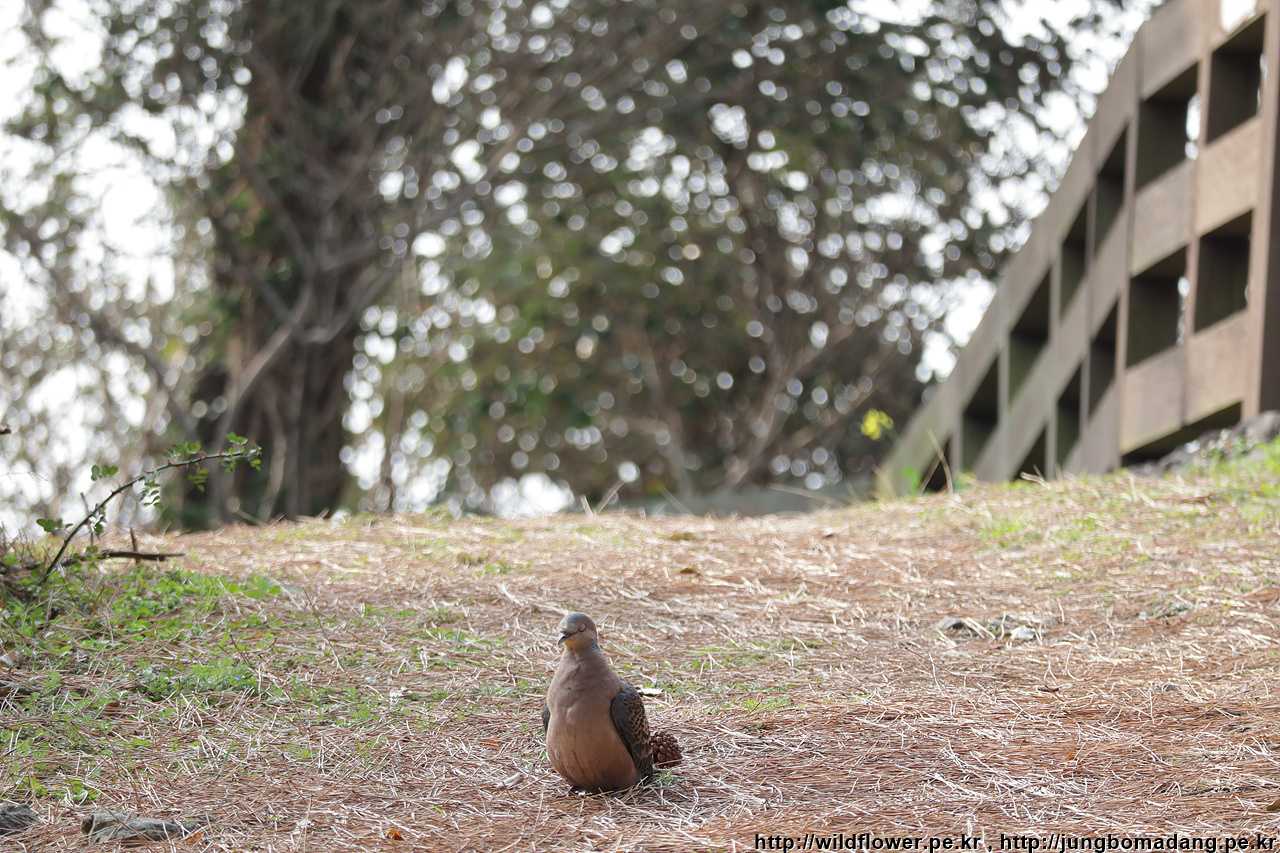 대포연대 오름길에 산비둘기 한마리가 대치중...