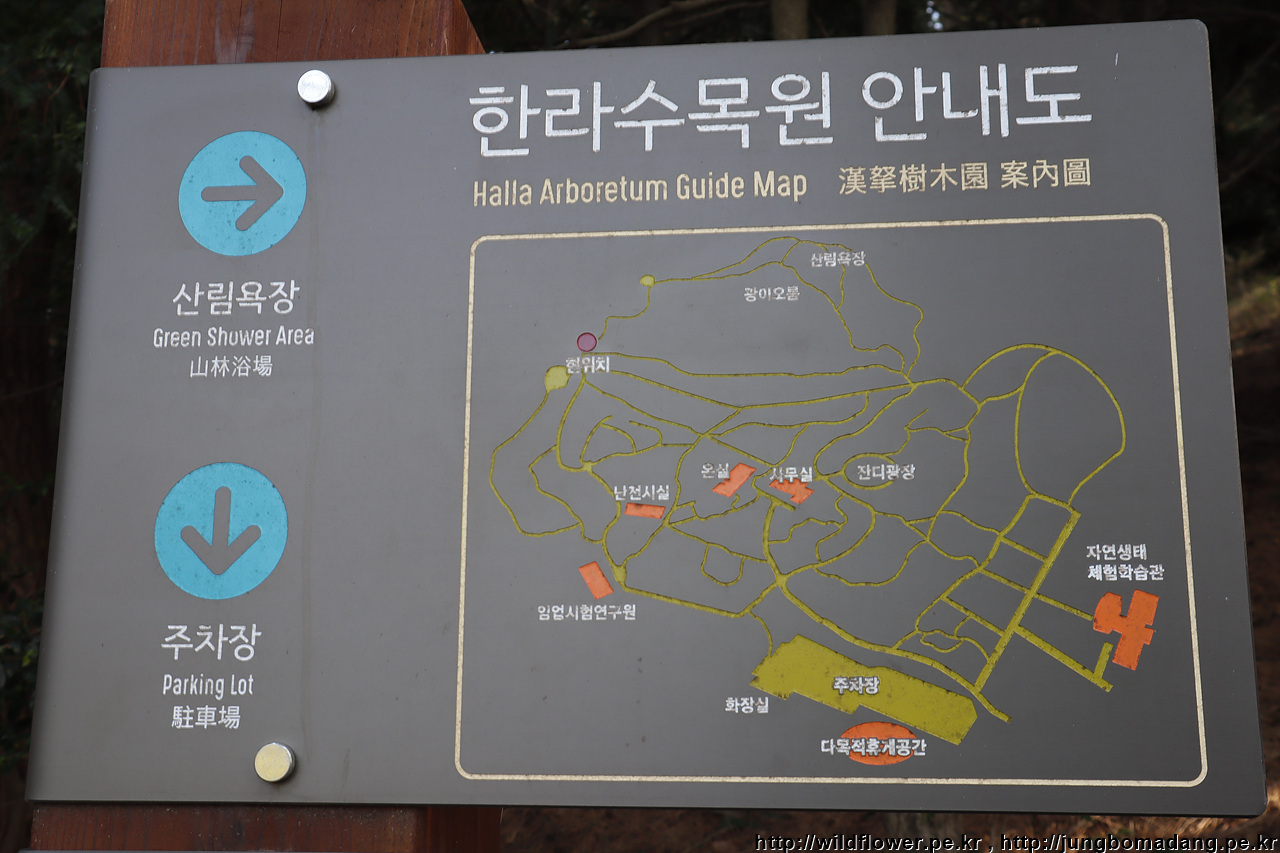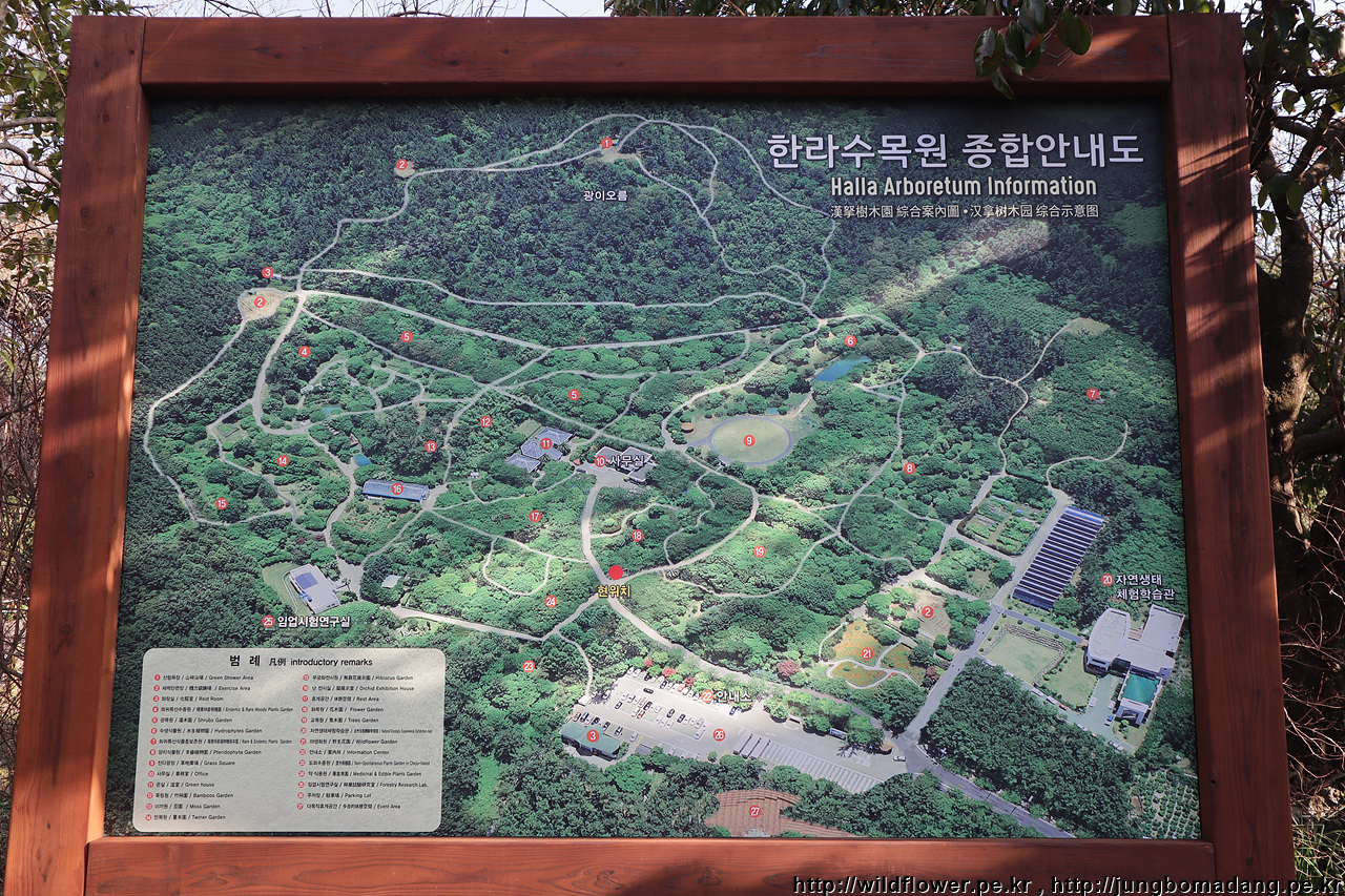 한라수목원 안내도입니다. 대중교통 기준 어리목, 중문 방면 1100도로에 있고, 잠시 두어시간 둘러보기 좋은 곳 같네요.