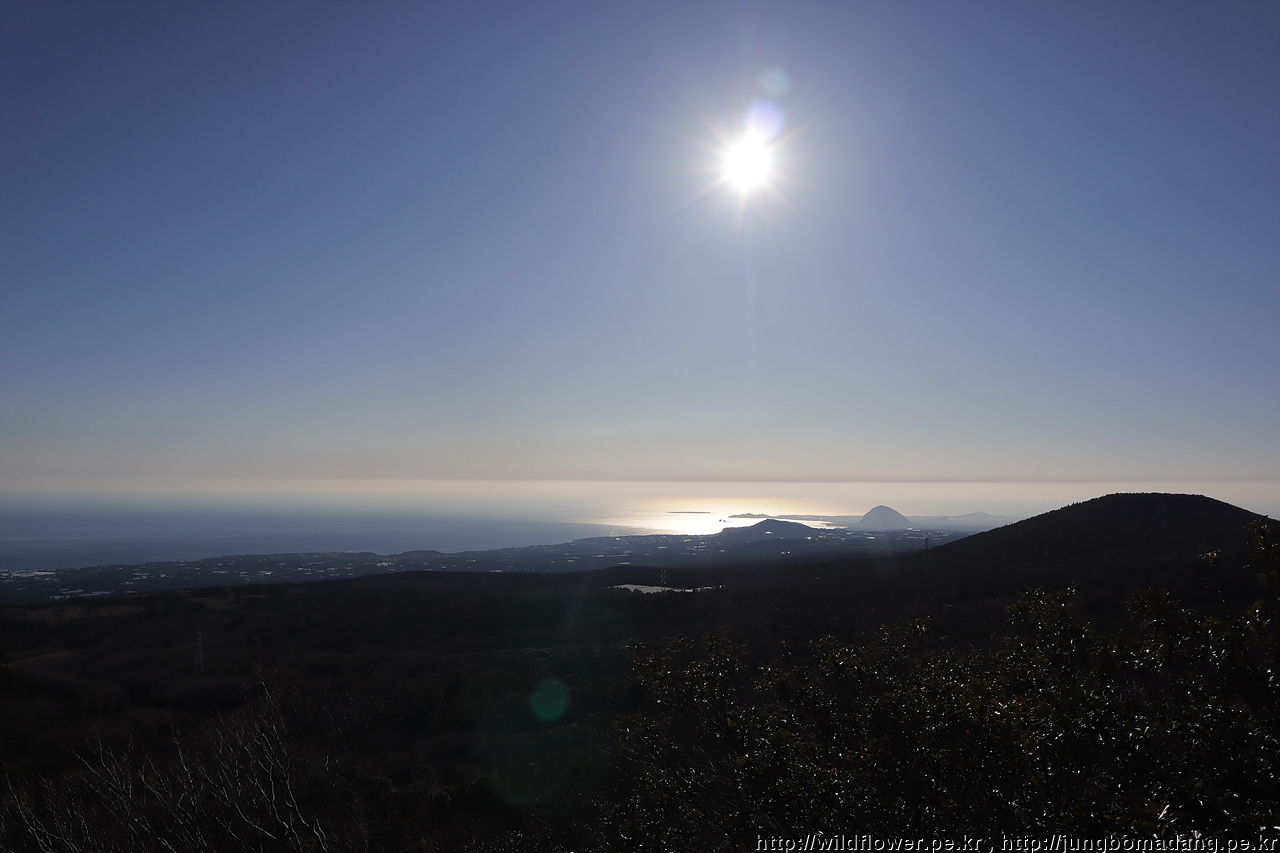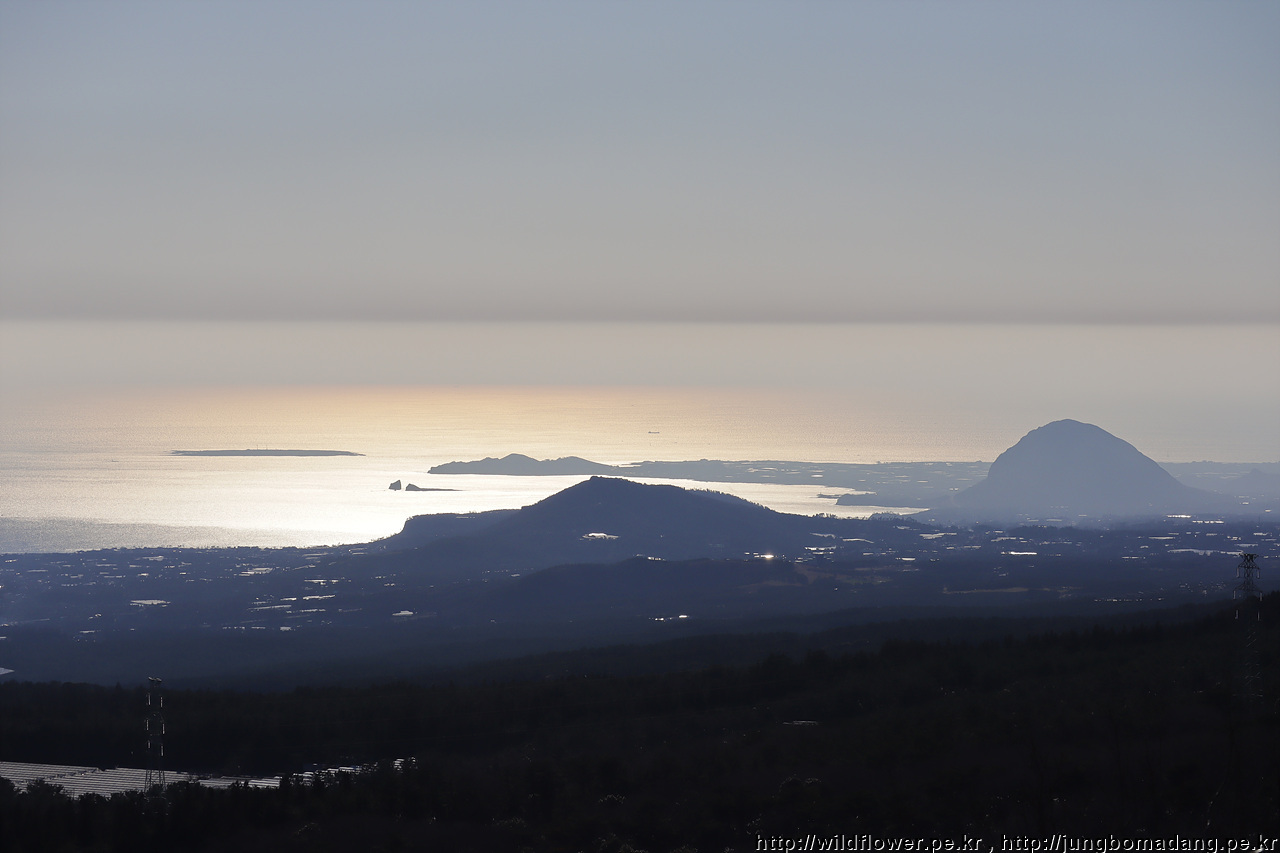 바다 위에 넓적한 지귀도라는 섬도 보입니다. 우측편에 봉우리는 제지기오름. 원래 바다 근처의 오름은 봉으로 끝나는 데 이건 왜 오름인지 모르겠네요.